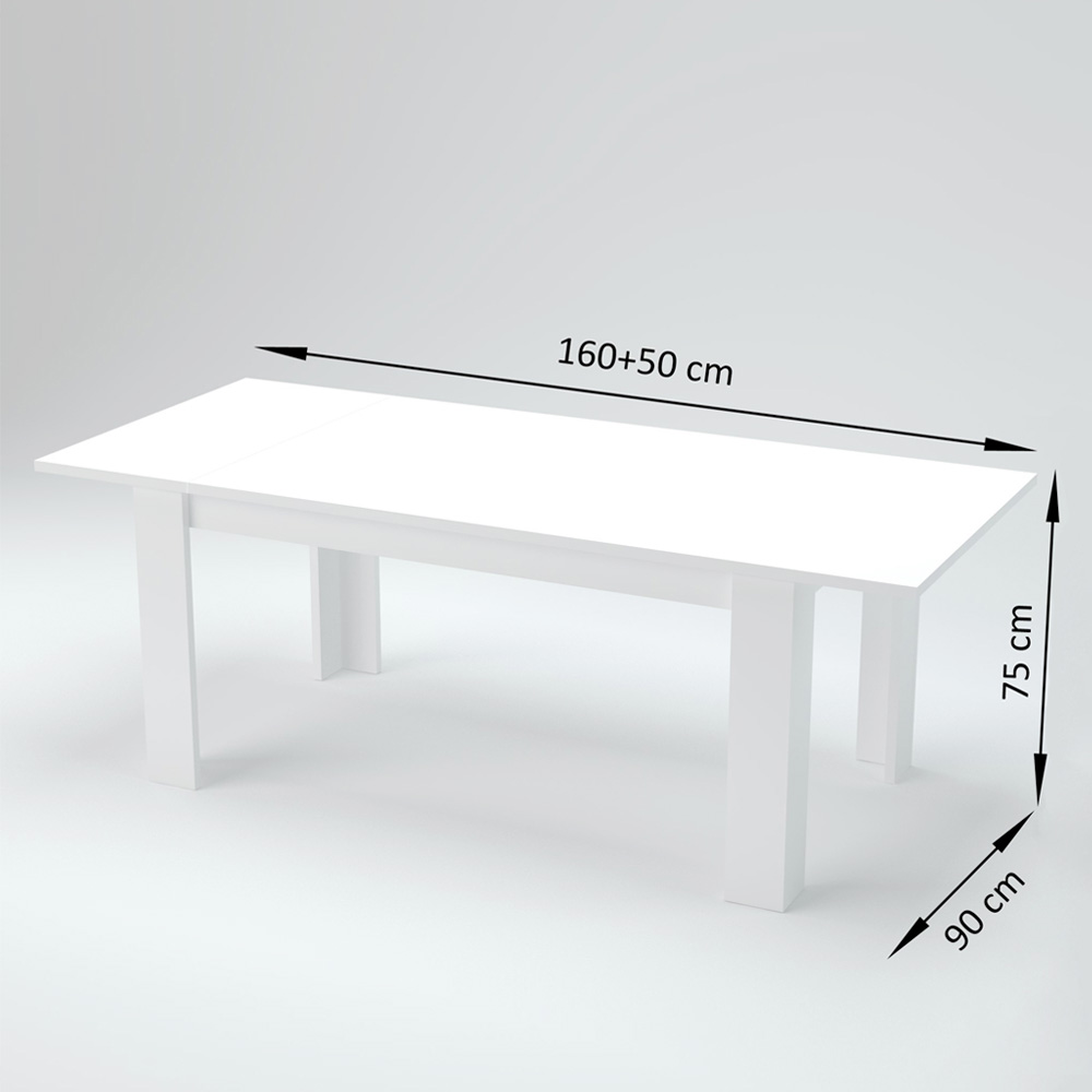 La mesa de comedor extensible tiene un diseño rectangular que se caracteriza por líneas limpias y minimalistas.