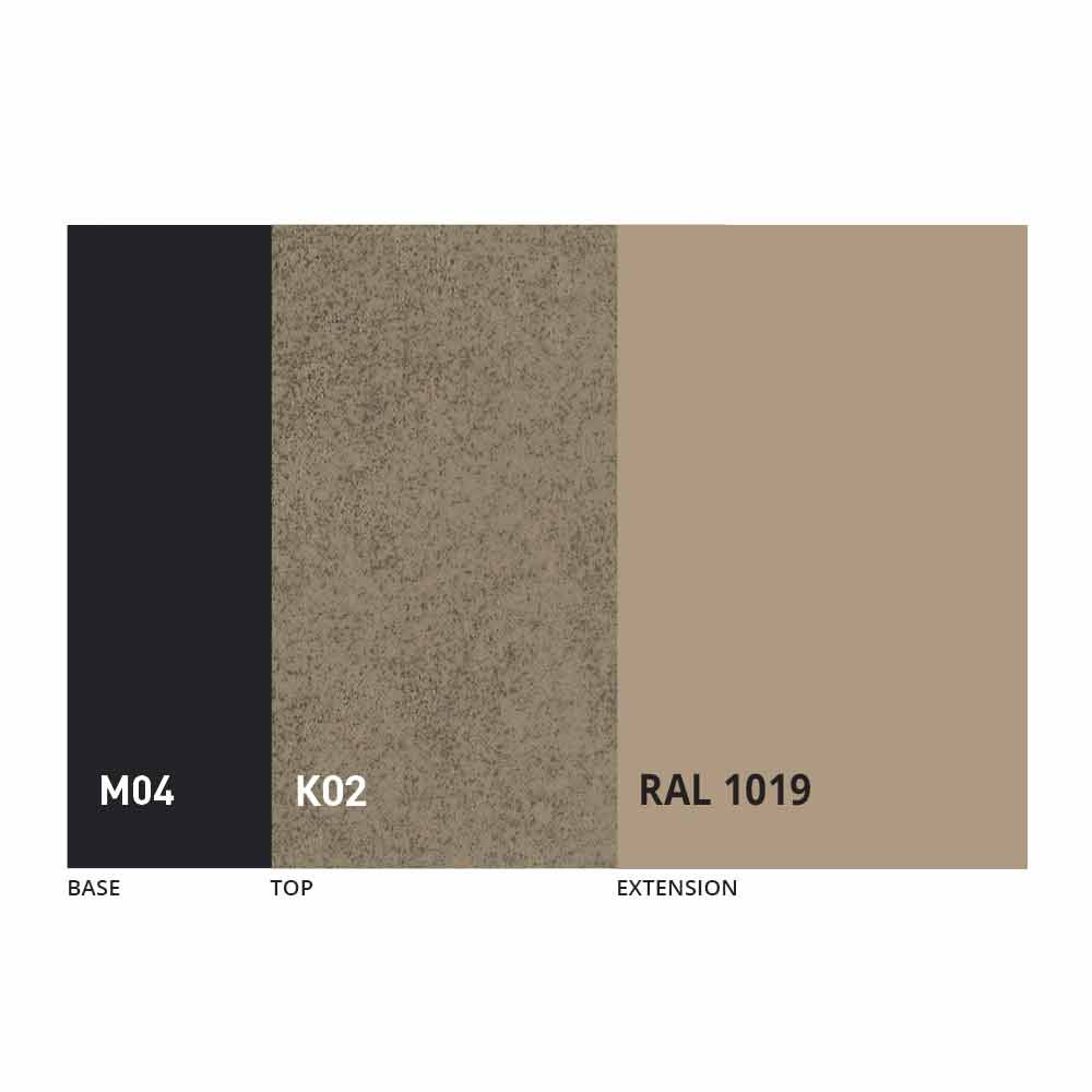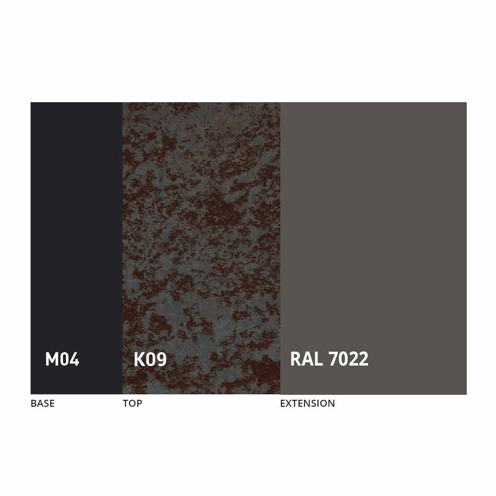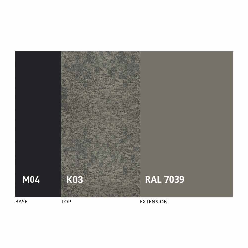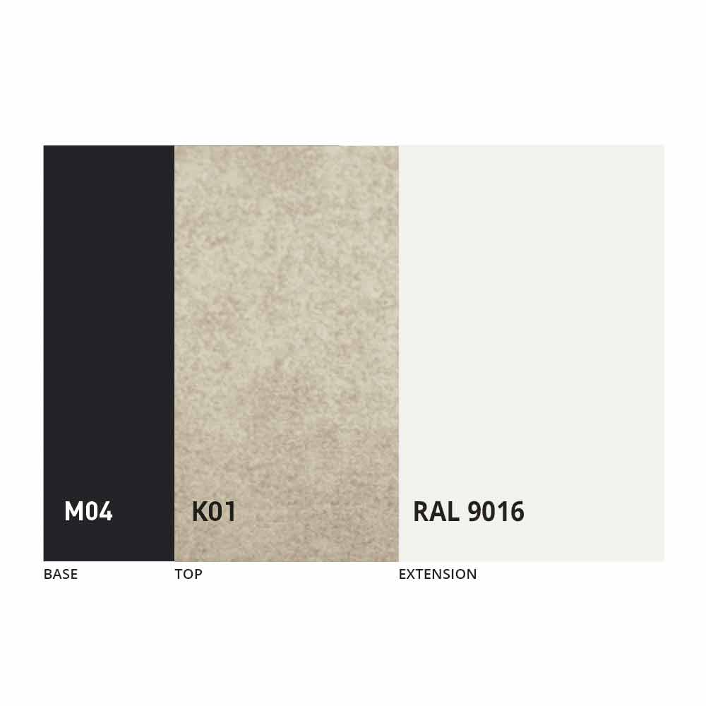 El sobre y la base de la mesa se pueden personalizar con diferentes materiales y acabados de muestra o lacado RAL. Para obtener información, póngase en contacto con nosotros mediante el formulario " Solicitud de información" correspondiente.