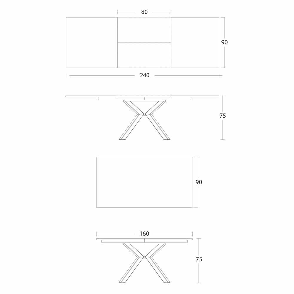 • L 160-240 x P 90 x H 75 cm