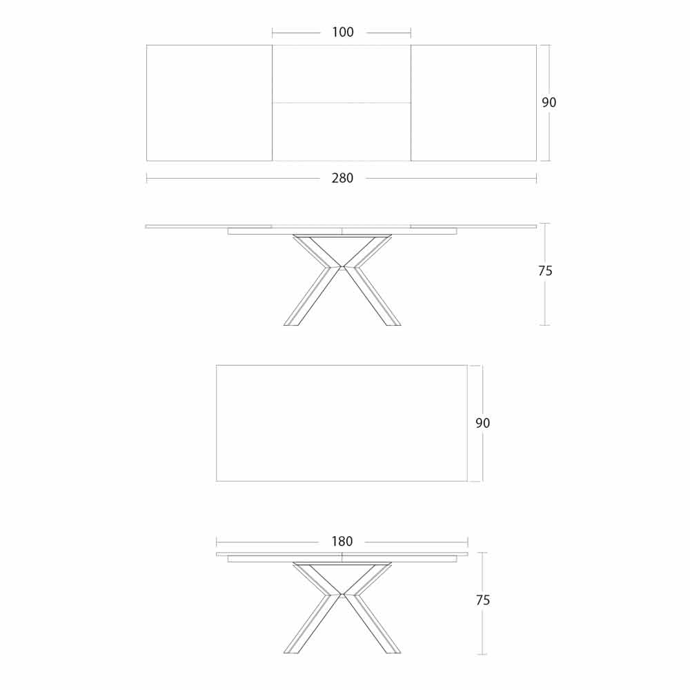 • Ancho 180-280 x Ancho 90 x Alto 75 cm