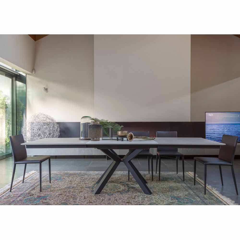 Mesa de comedor extensible a 280 cms con tapa de cerámica laminam made in Italy.