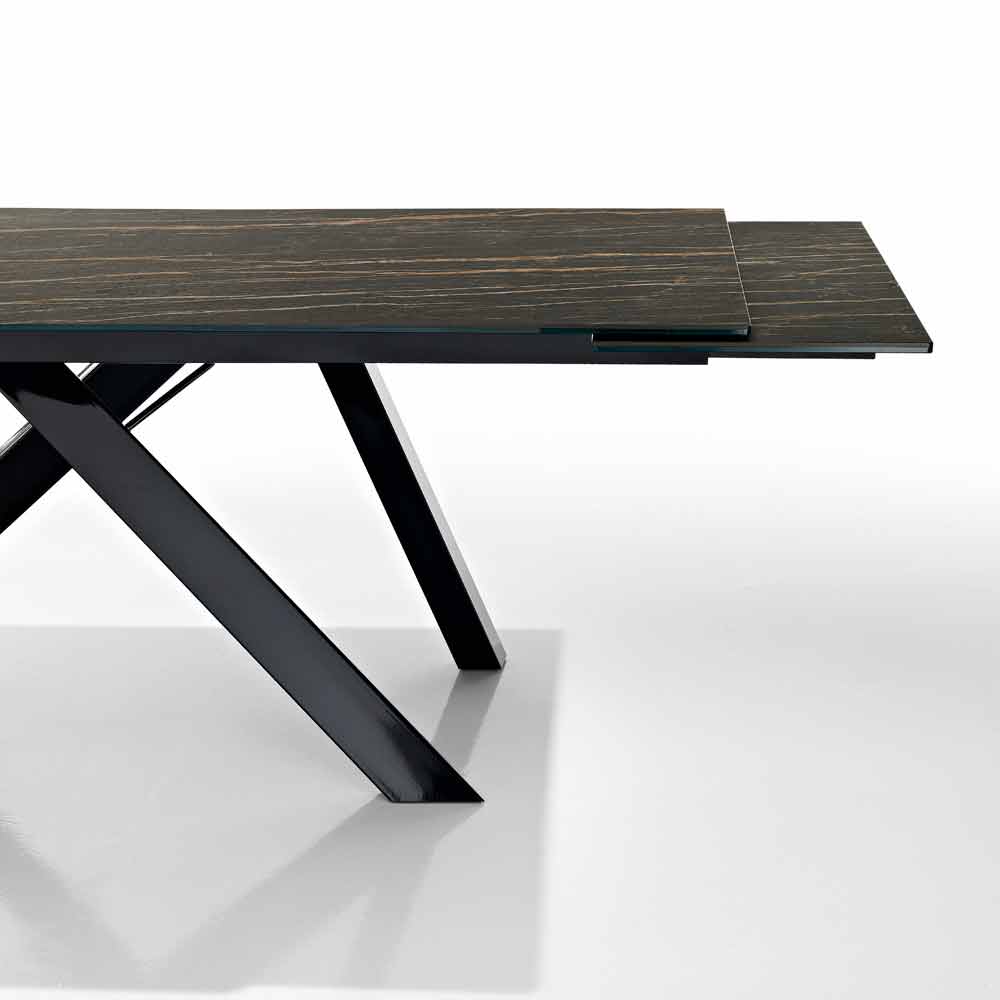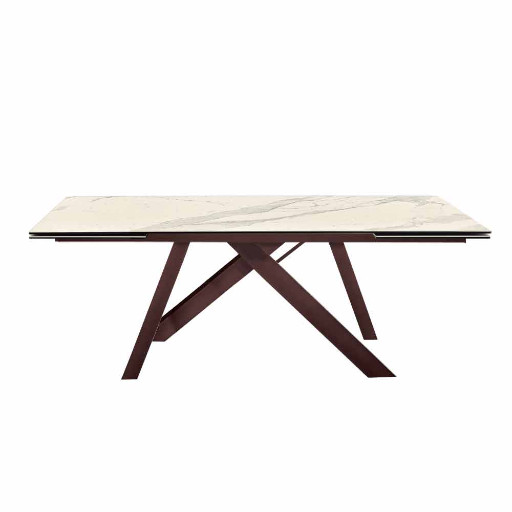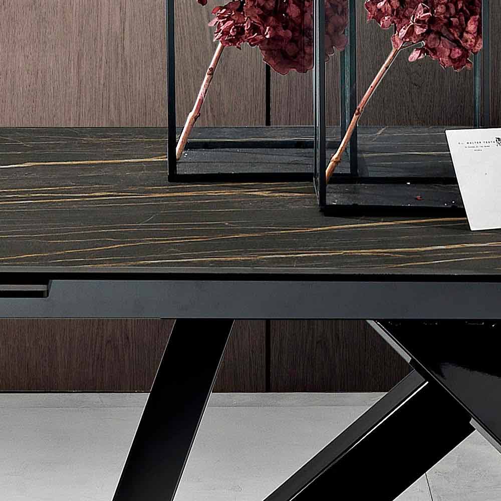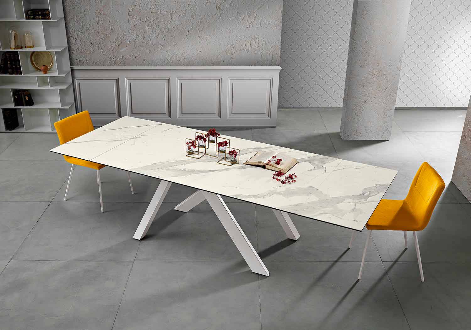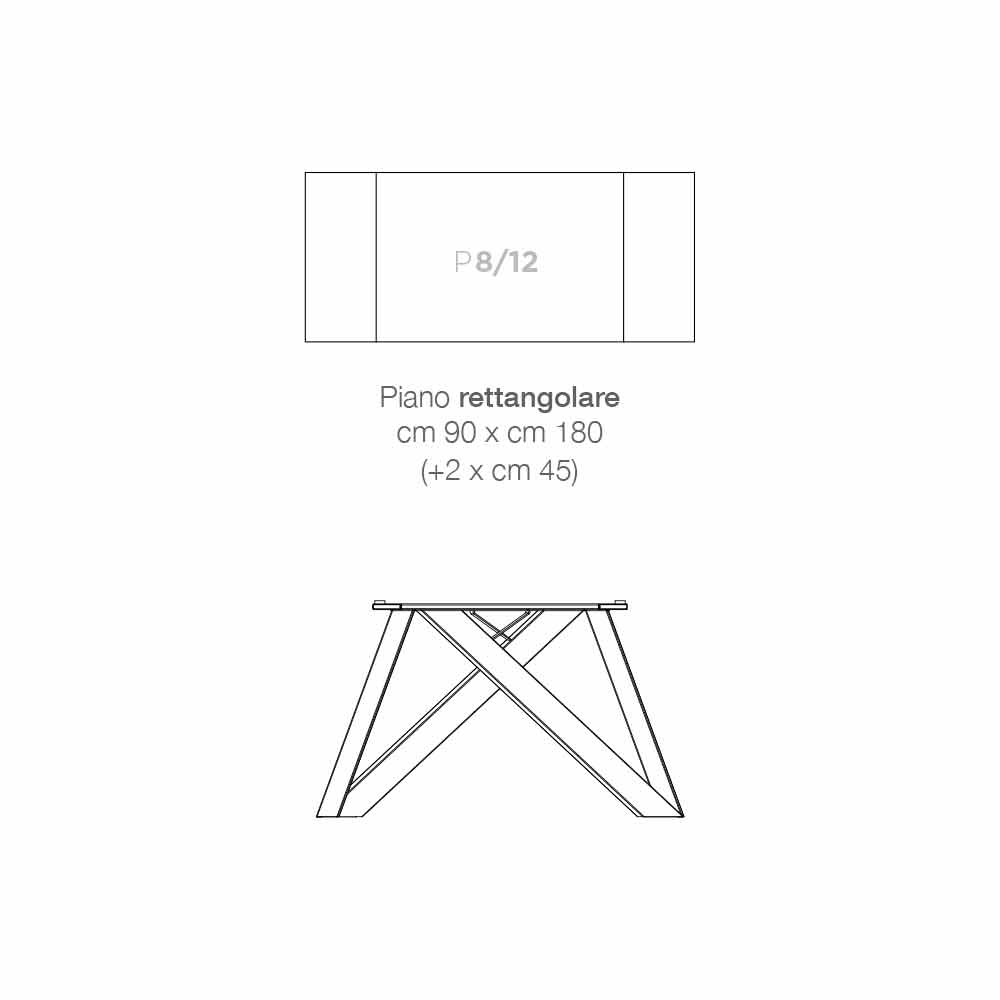 Wilmer es una mesa extensible realizada en Italia con una base de metal pintado y una superficie que incluye extensiones de vitrocerámica . Disponible en diferentes variantes de acabados: Base :
