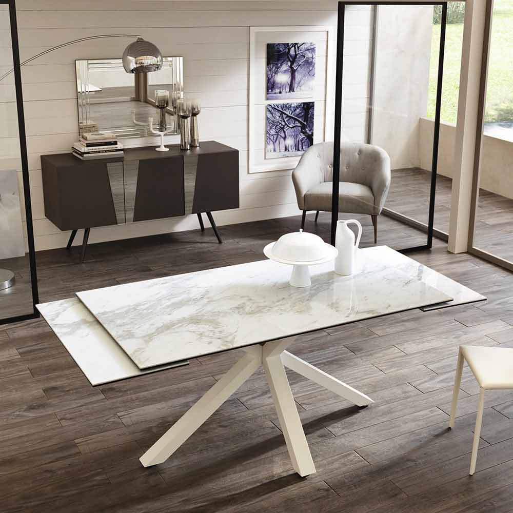 Mesa de comedor extensible de vitrocerámica, l.160 / 240xp.90 cm, Bacco