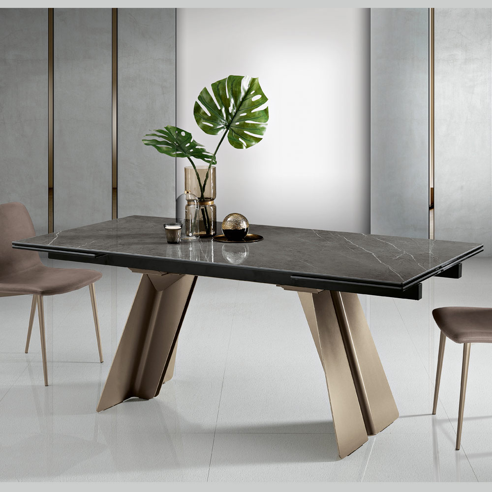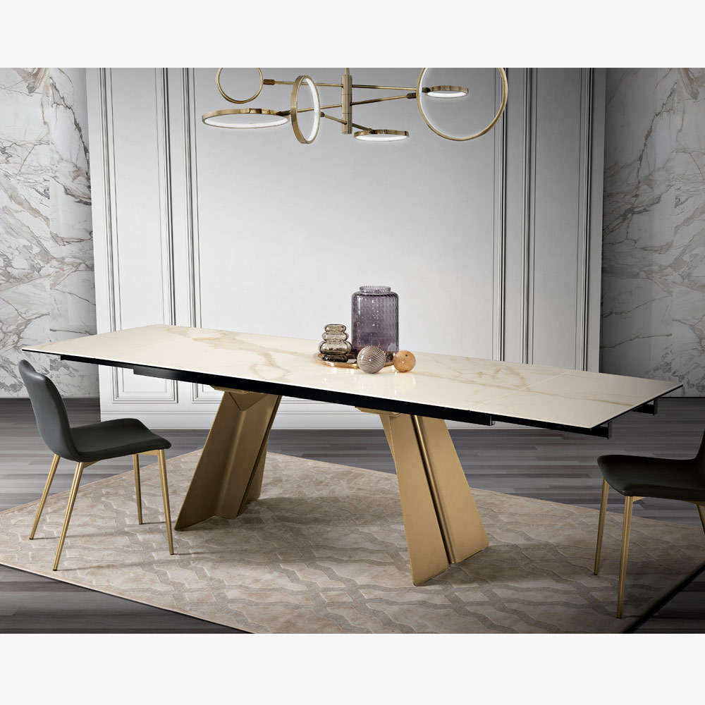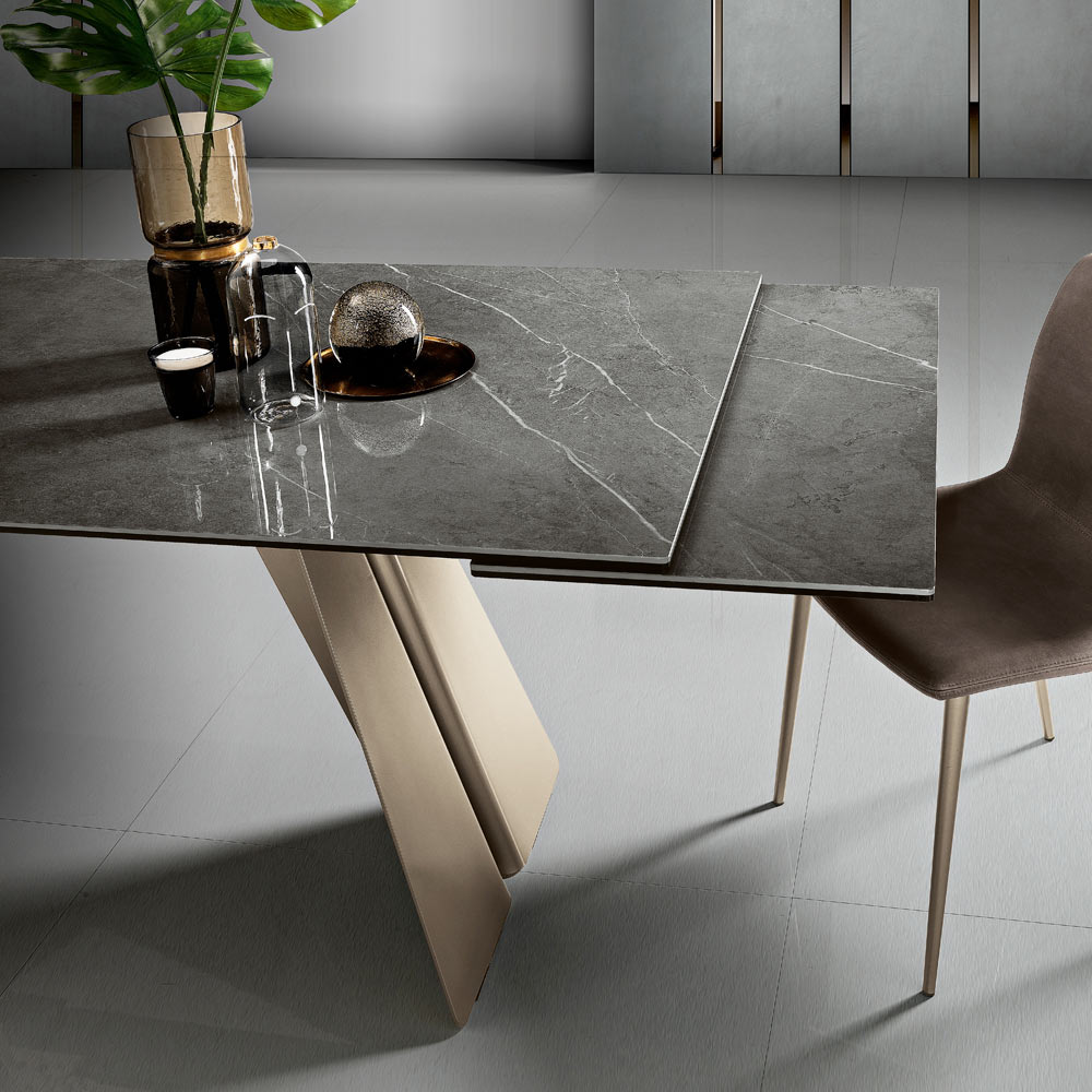 Esta creación es mucho más que una mesa extensible : es una obra de arte que define cualquier ambiente con su presencia escenográfica. La superficie habla el lenguaje del lujo y la naturaleza y promete transformar cada comida en un evento.