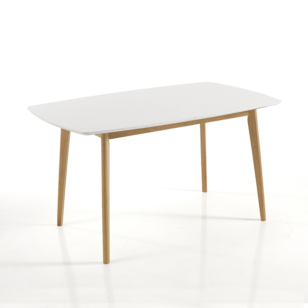 Mesa de comedor con tapa extensible hasta 150 cm en MDF contrachapado y estructura de madera maciza. Estiramiento colocado debajo de la parte superior. Gracias a la posibilidad de ampliarse, puede albergar a un mayor número de amigos y familiares para pasar agradables veladas en compañía.