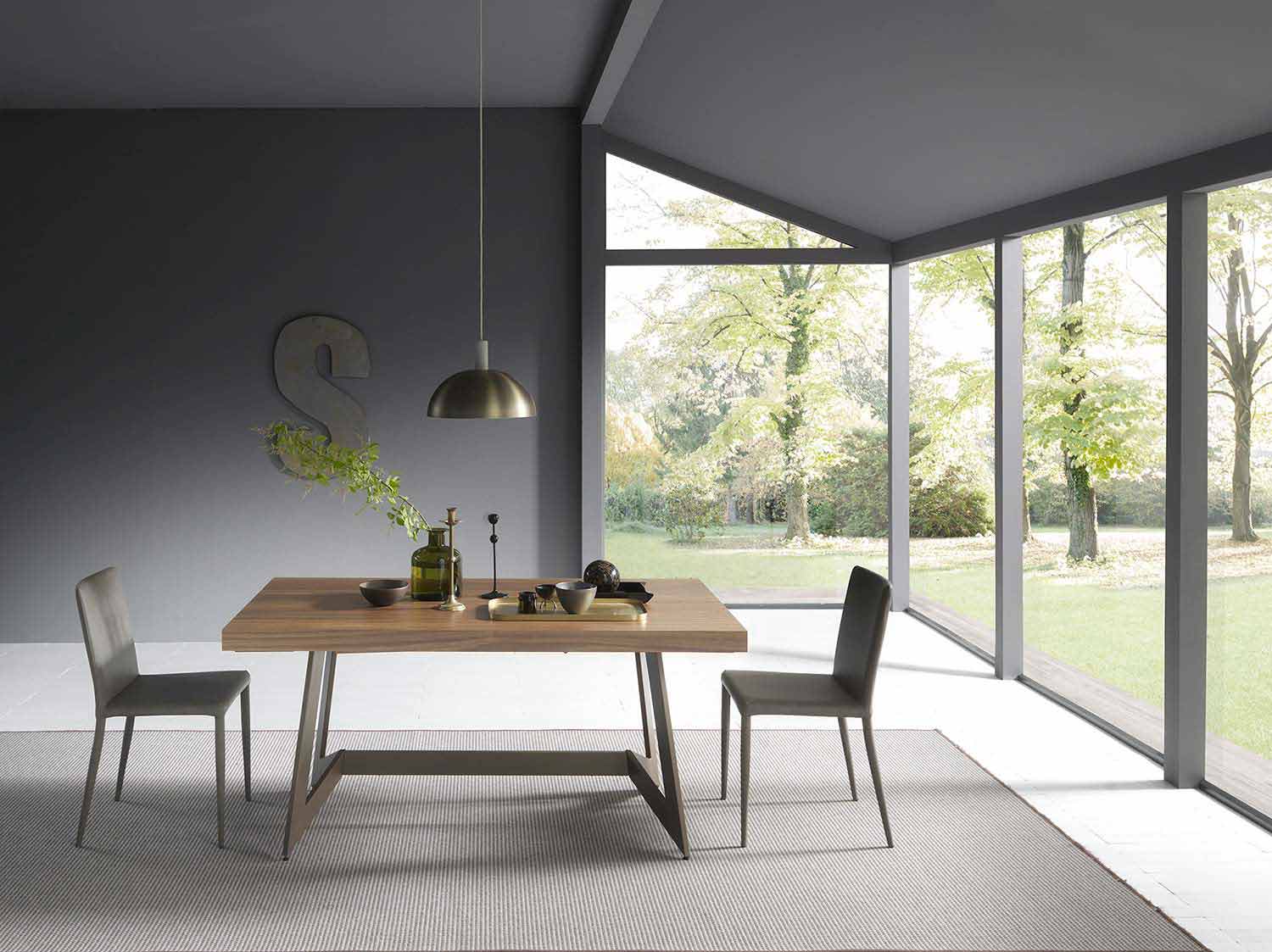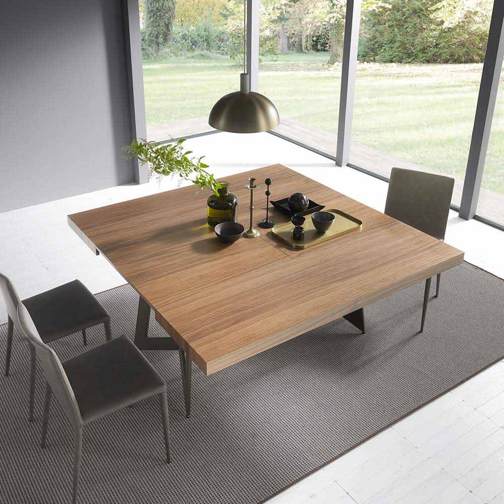 Mesa de comedor extensible con tapa de madera y estructura de metal Made in Italy.