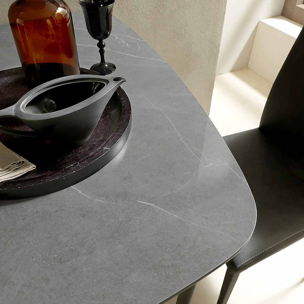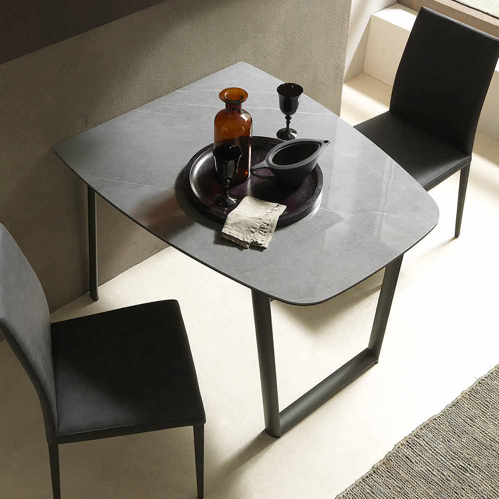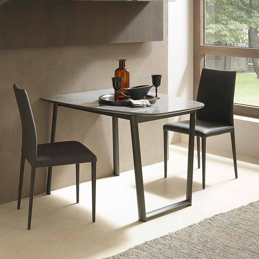 Mesa de comedor extensible hasta 170 cm en metal con tapa de cerámica Made in Italy.