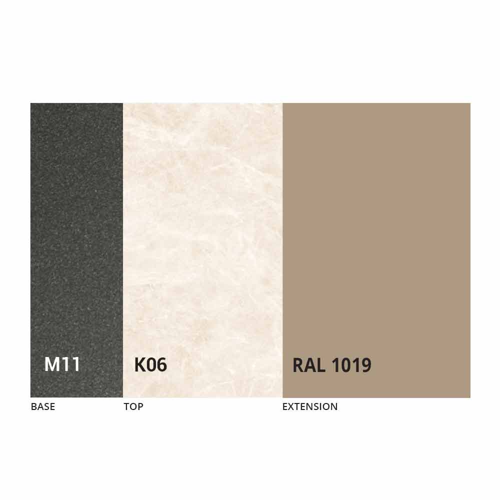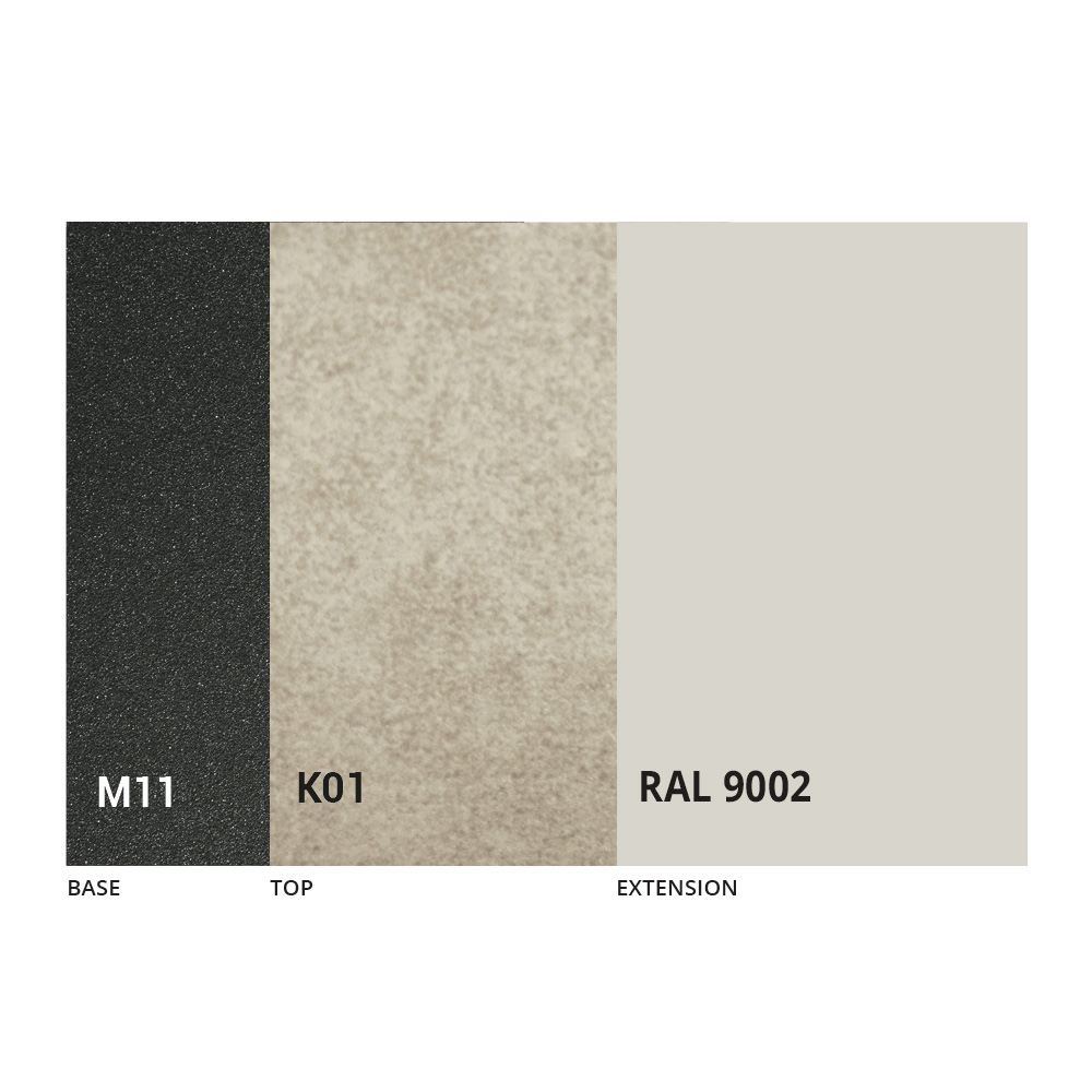 El sobre, la extensión y la base de la mesa se pueden personalizar con diferentes acabados de muestra. Para obtener información, póngase en contacto con nosotros mediante el formulario "