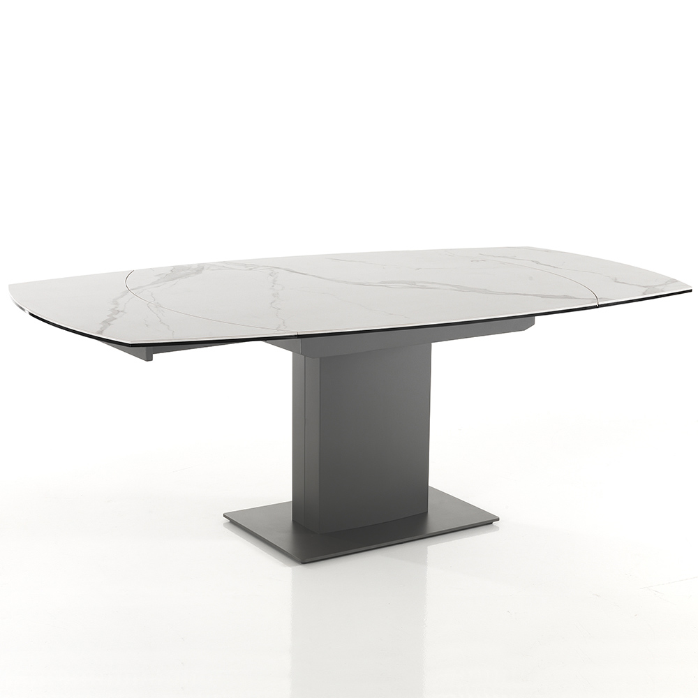 Mesa de comedor con tapa extensible en cerámica efecto mármol mate.