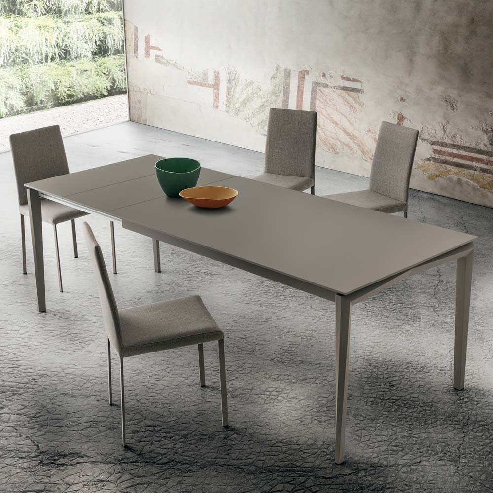 Mesa de comedor fabricada en Italia con patas de madera de haya pintada, tapa de fenix canteada en ABS y guía de aluminio pintado con deslizadores de resina acetálica (POM). La peculiaridad de este maravilloso complemento de decoración es la posibilidad de ampliar la encimera hasta una longitud máxima de 240 cm gracias a las extensiones a juego realizadas en el mismo material que la encimera. Esta característica le permitirá satisfacer las necesidades de quienes aman recibir a amigos y familiares para almuerzos y cenas en compañía sin tener que renunciar a una solución de mobiliario moderna y exclusiva capaz de ganar el centro de atención, convirtiéndose en el verdadero protagonista de la habitación. . Lo que hace única esta mesa es la elección de utilizar fenix, un material innovador caracterizado por una superficie tratada con resinas de nueva generación capaces de hacer que el producto sea particularmente resistente , agradable al tacto y extremadamente opaco .