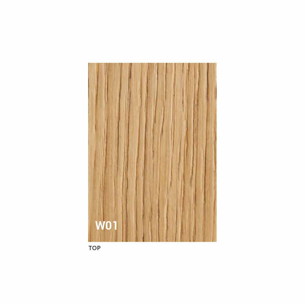 El tablero de la mesa se puede personalizar con diferentes acabados de muestra. Además, también está disponible en la versión con cantos rectos.