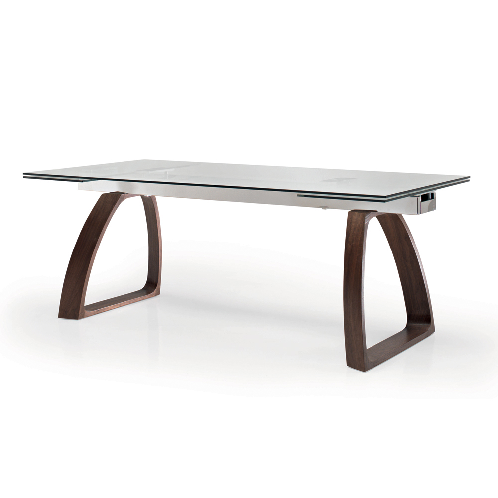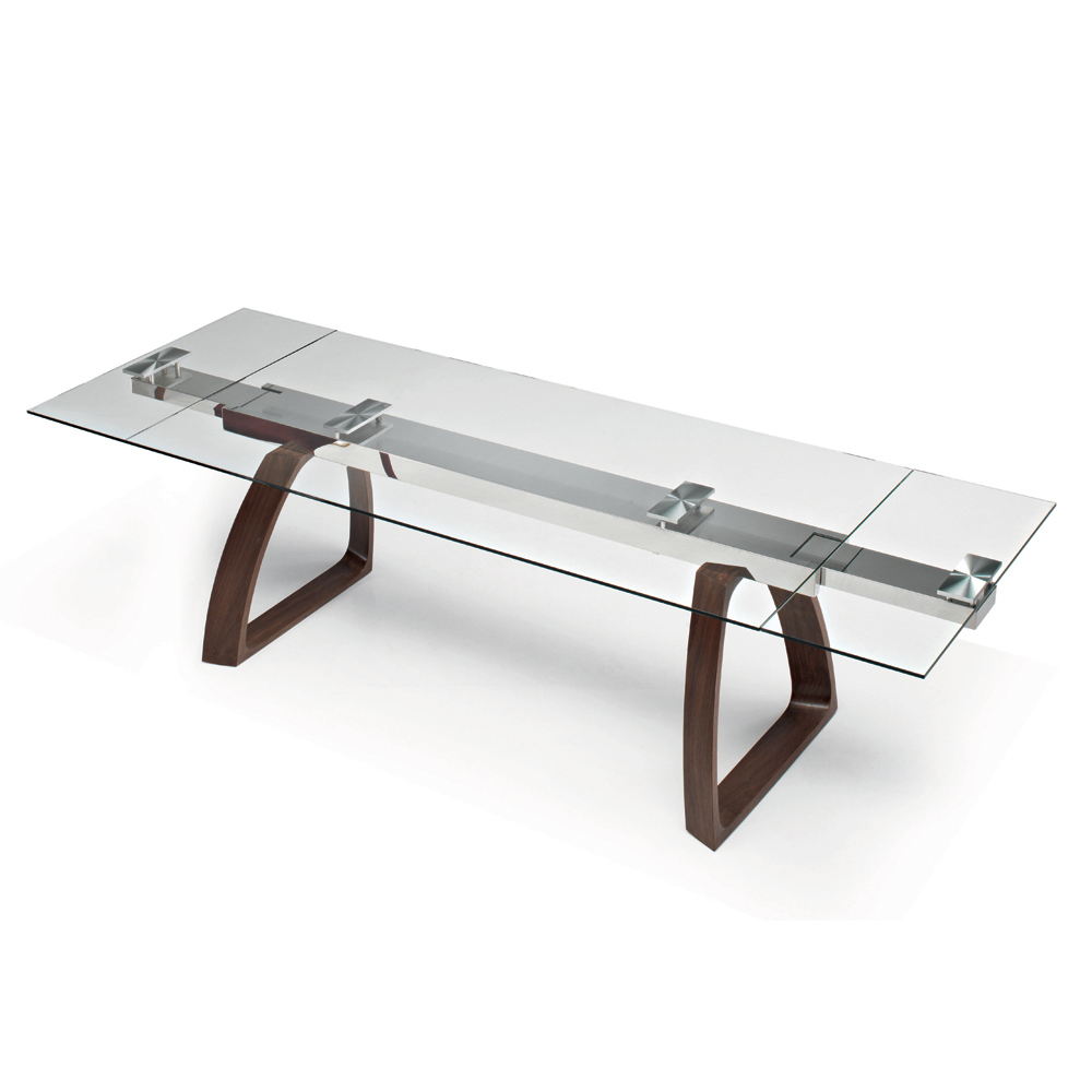 Mesa de comedor extensible con tapa de cristal y base de madera Made in Italy.