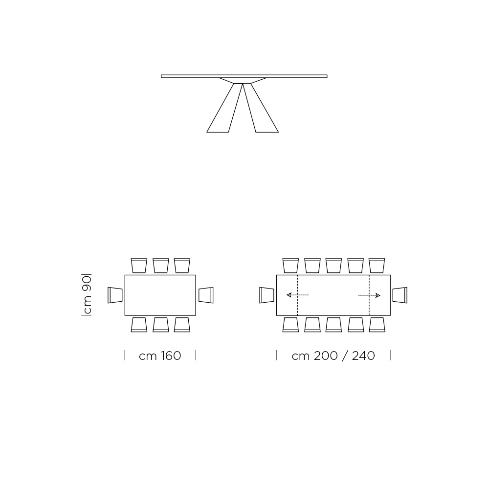 - L 160/240 x P 90 x H 75,5 cm 12 asientos (2 extensiones de 40 cm);