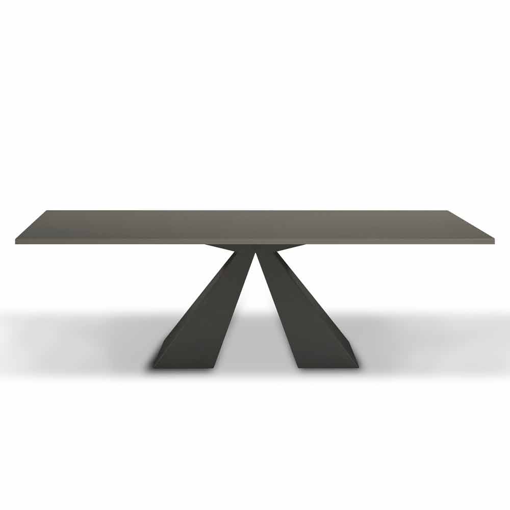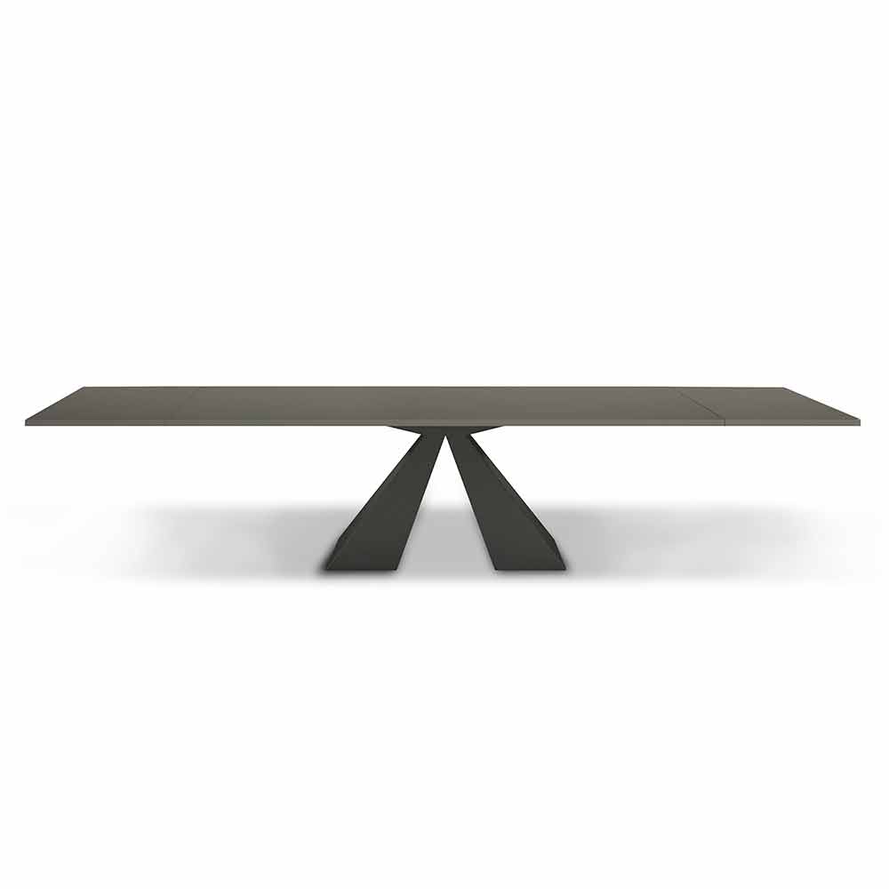 Mesa de comedor de lujo con tapa extensible de fenix y base de acero Made in Italy.