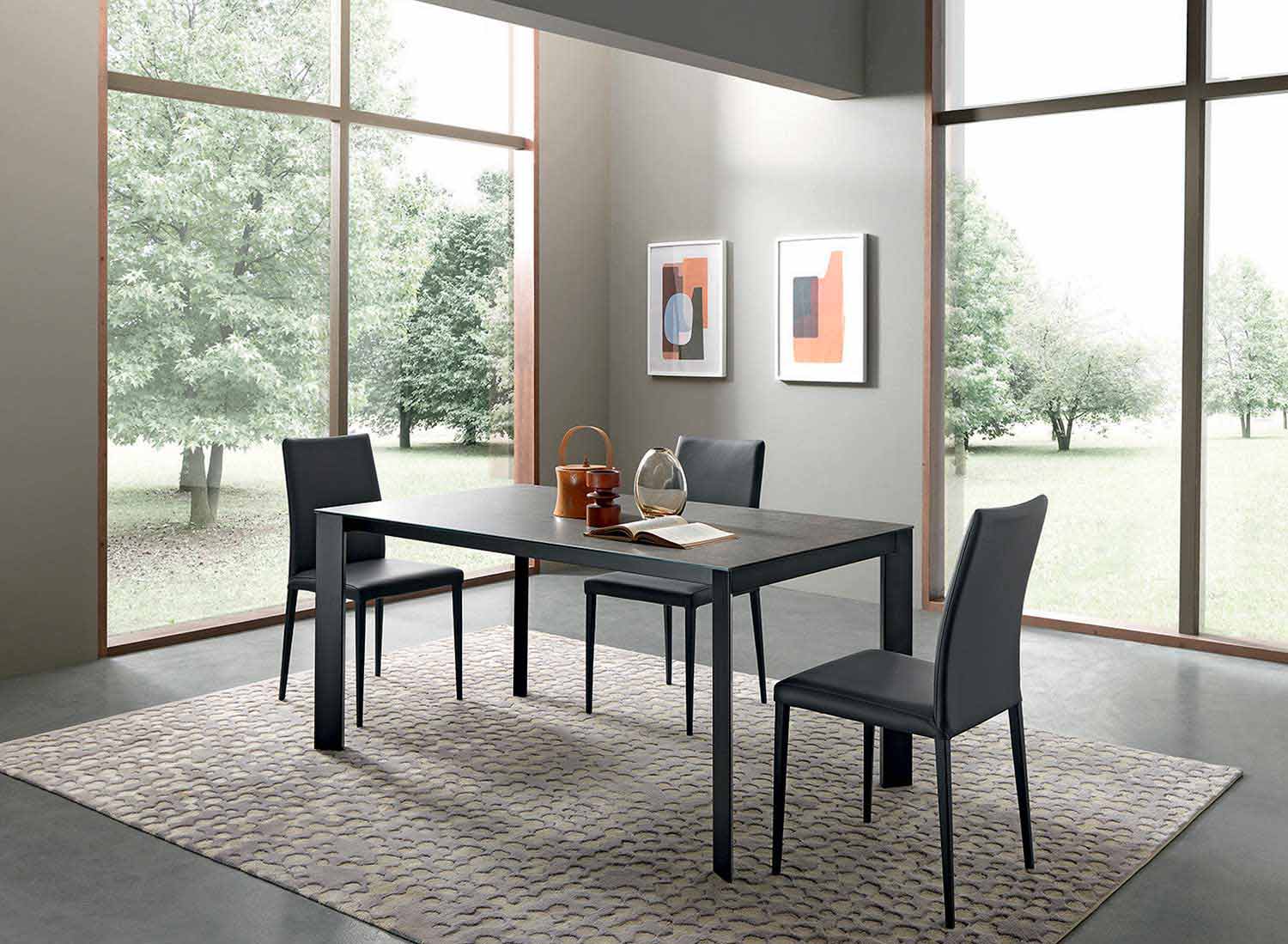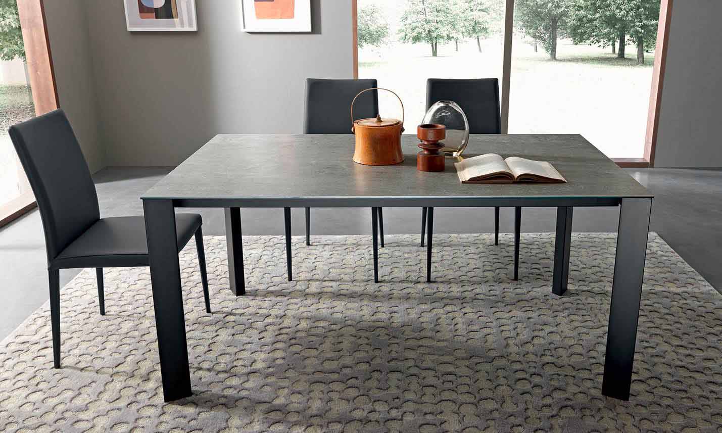 Su característica peculiar viene dada por la forma triangular de las patas que perfila un estilo minimalista y absolutamente elegante. Hecho a mano en Italia con materiales de alta calidad y 100% made in Italy. Con tapa extensible de cerámicasobre MDF y base de metal pintado en negro mate .