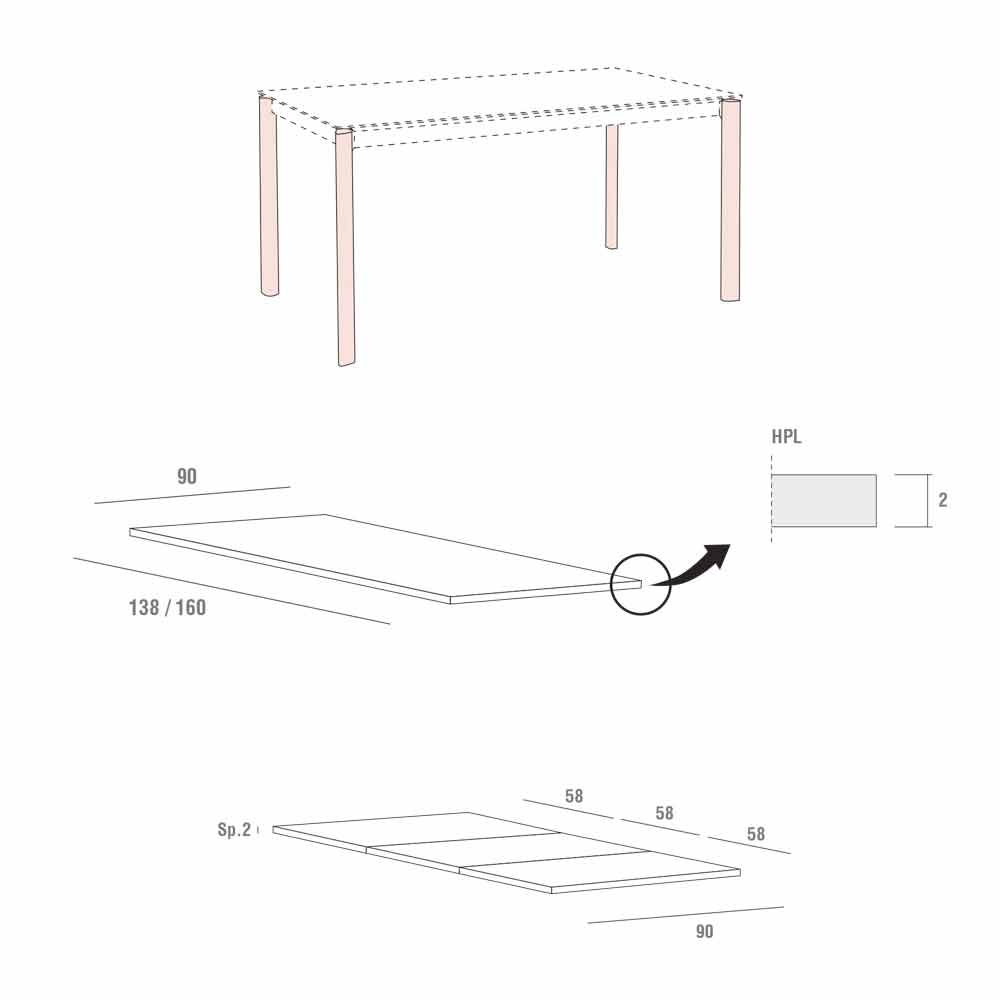 tablero extensible que puede alcanzar una longitud de 334 cm, lo que la convierte en la idea perfecta para quienes aman organizar comidas y cenas con amigos y necesitan una solución tan práctica como moderna, capaz de crear un maravilloso armonía con el mobiliario circundante. Para subrayar su espléndida estética está la tapa de hpl, un