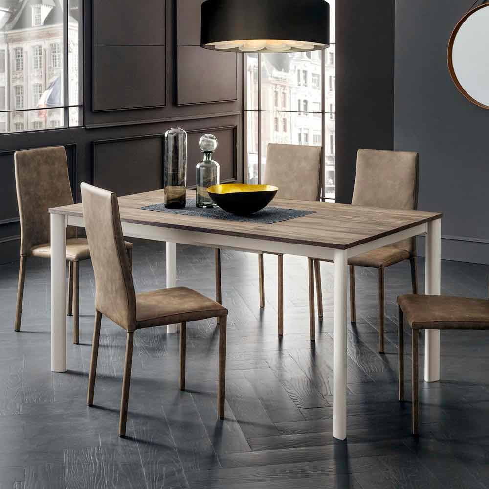 Mesa de comedor con tapa extensible en hpl imitación madera fabricada en Italia, de alta calidad.