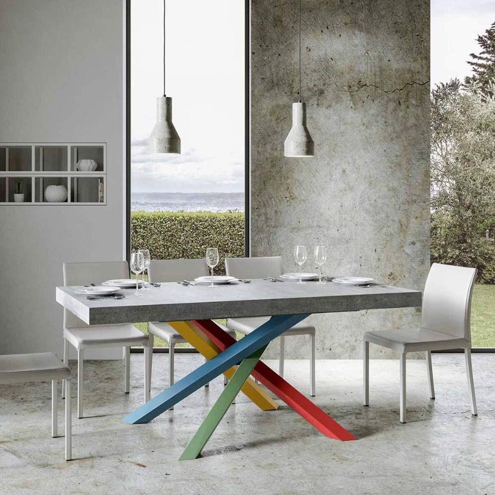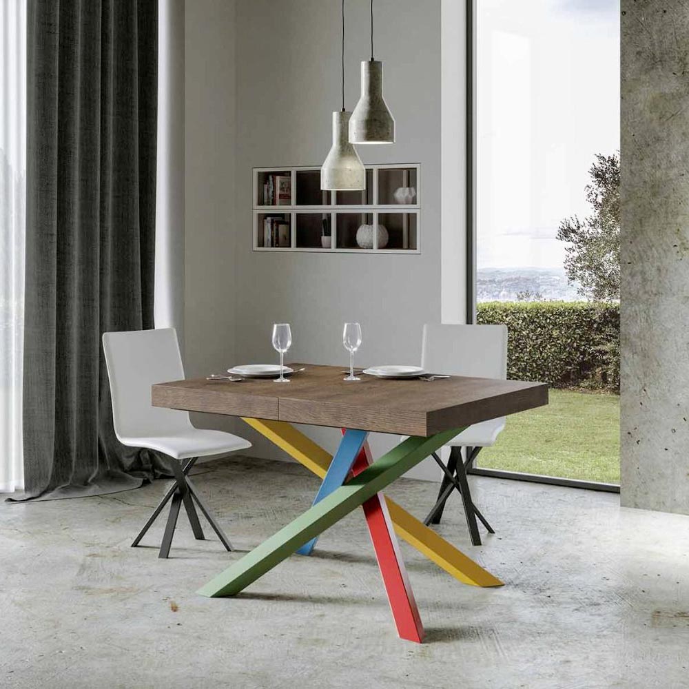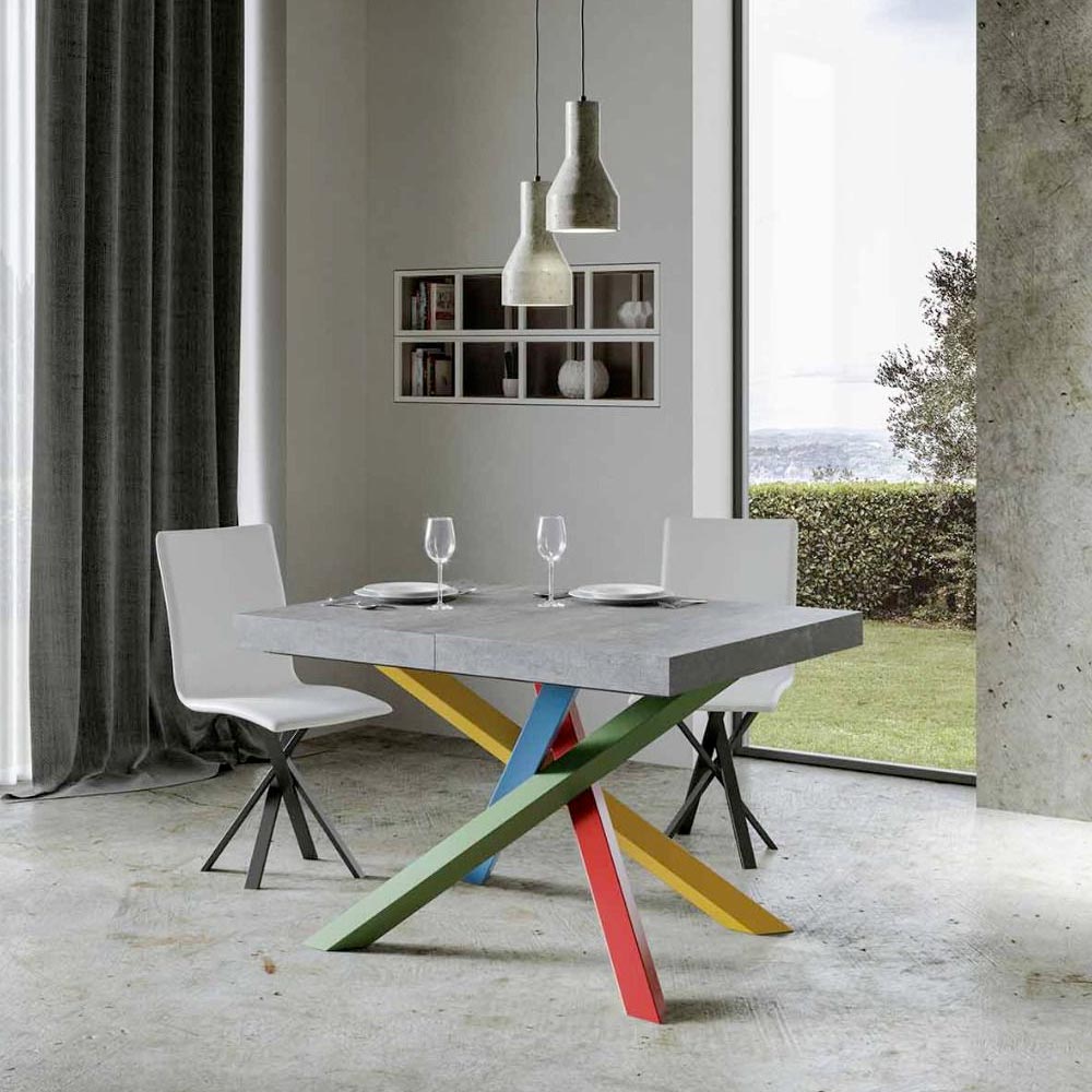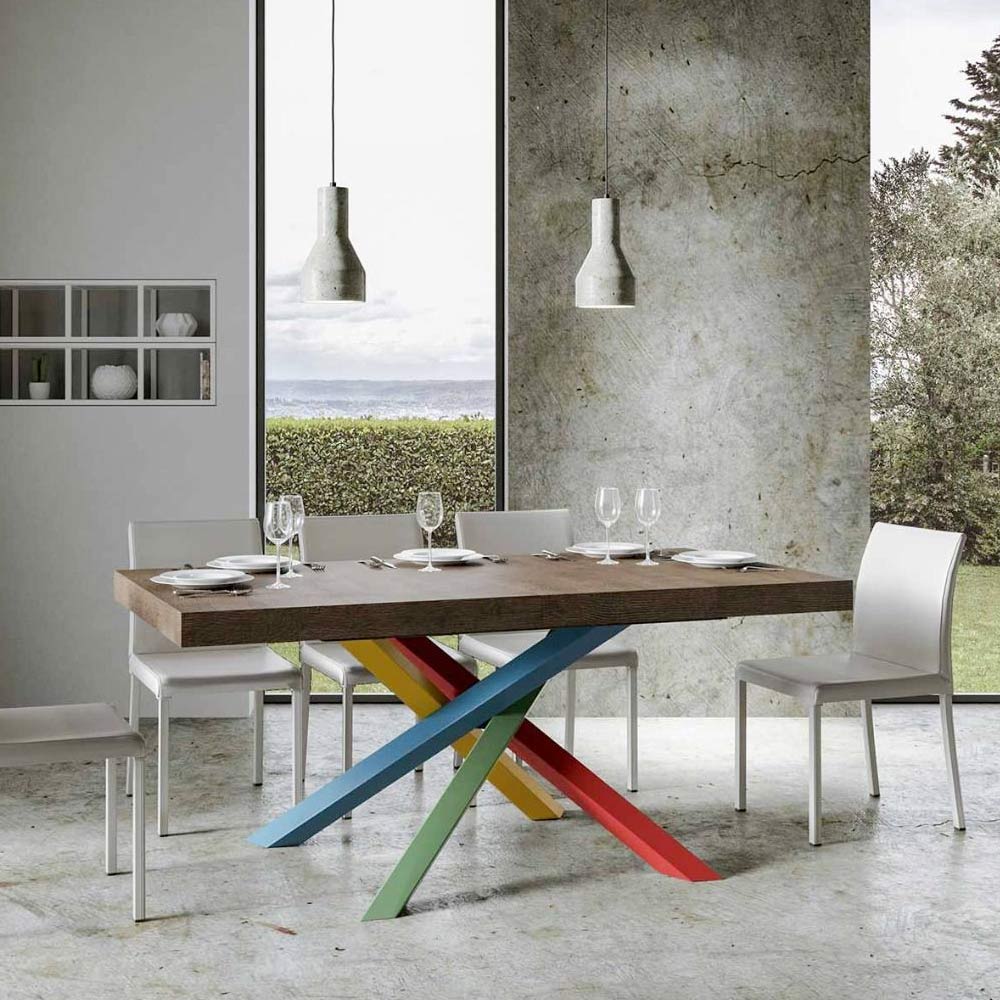 Descubre la mesa extensible, una obra maestra del diseño moderno que destaca por su silueta única y versátil funcionalidad. El sobre de madera realza la luminosidad de los espacios, ofreciendo una superficie lisa y resistente que invita al uso diario. La base de la mesa è un verdadero espectáculo geométrico, con patas cruzadas que se entrelazan en un juego de colores. La combinación propuesta è : Pata 1: Rojo Carmín (RAL 3002). Pata 2: Verde amarillento (RAL 6018). Pierna 3: Azul lejano (RAL 5023). Pierna 4: Amarillo Señal (RAL 1003). Los colores RAL son opacos. Esta combinación no sólo añade un toque de vitalidad al diseño, sino que también garantiza estabilidad y resistencia. El mecanismo de extensión de la mesa es tan simple como ingenioso, lo que permite que este elegante mueble se transforme de una práctica mesa para cuatro a una acogedora zona para celebrar cenas y reuniones más grandes.