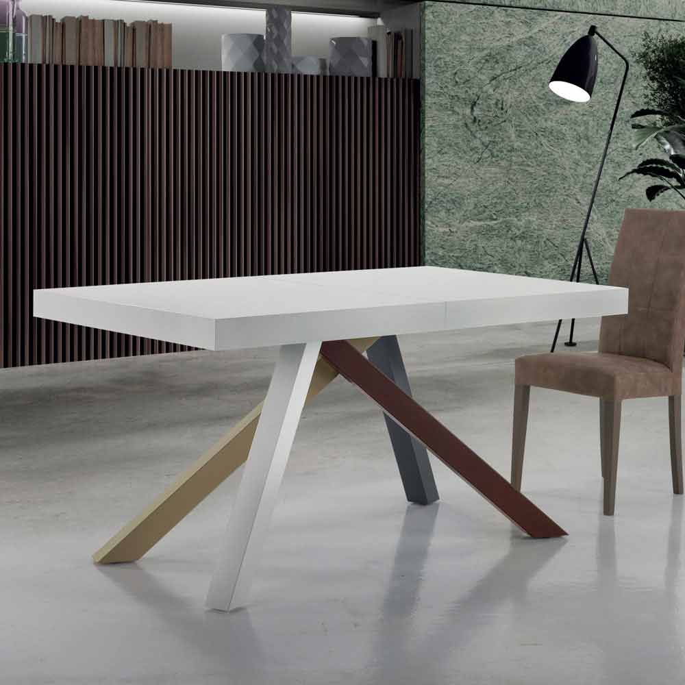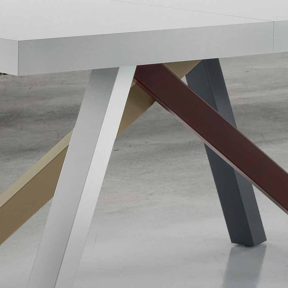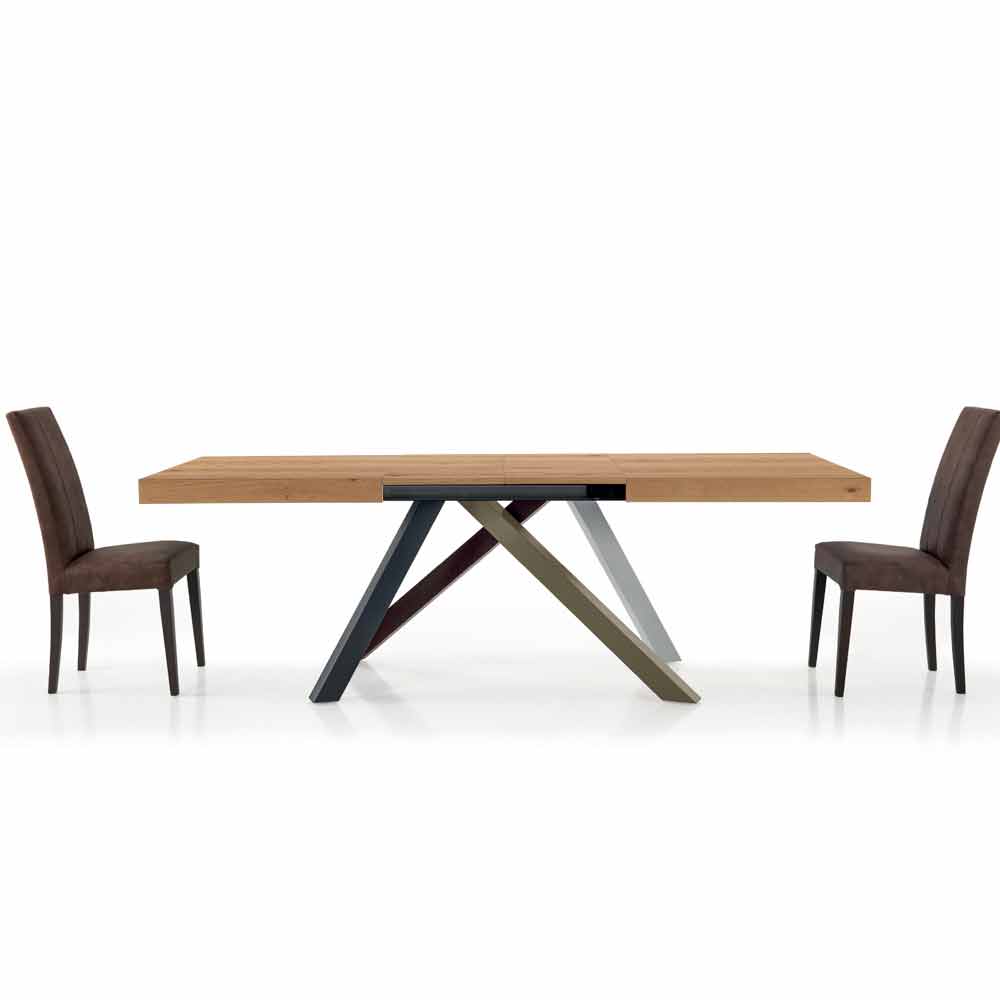 Mesa de comedor extensible hasta 450 cm con tapa de madera laminada y base de acero fabricada en Italia.