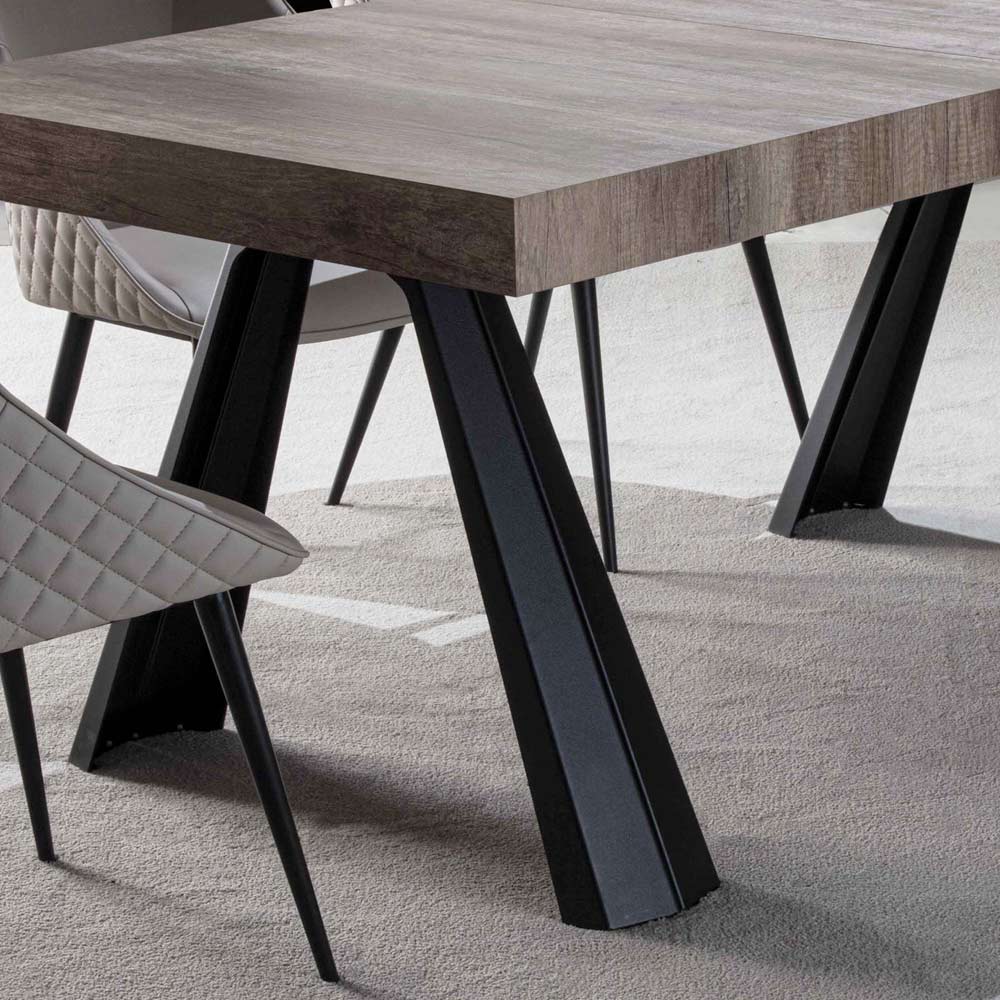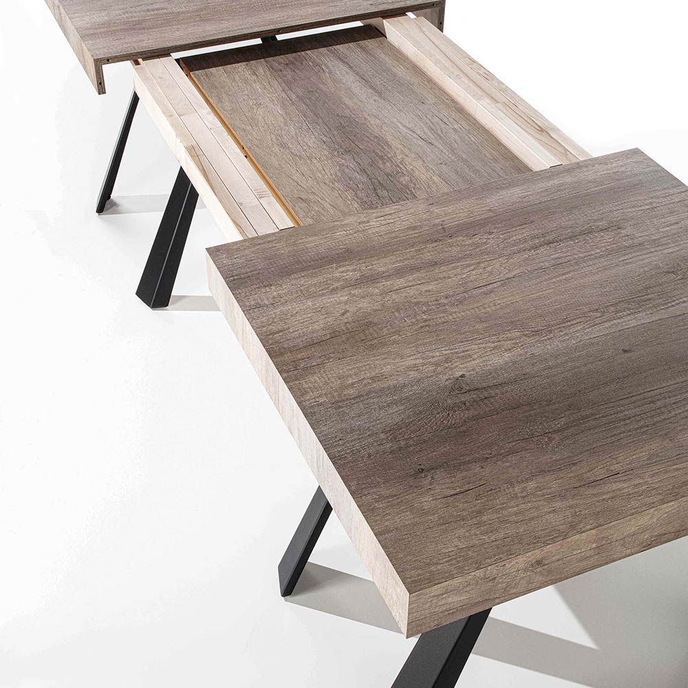 Mesa de comedor extensible hasta 500 cm en madera de melamina y metal pintado.