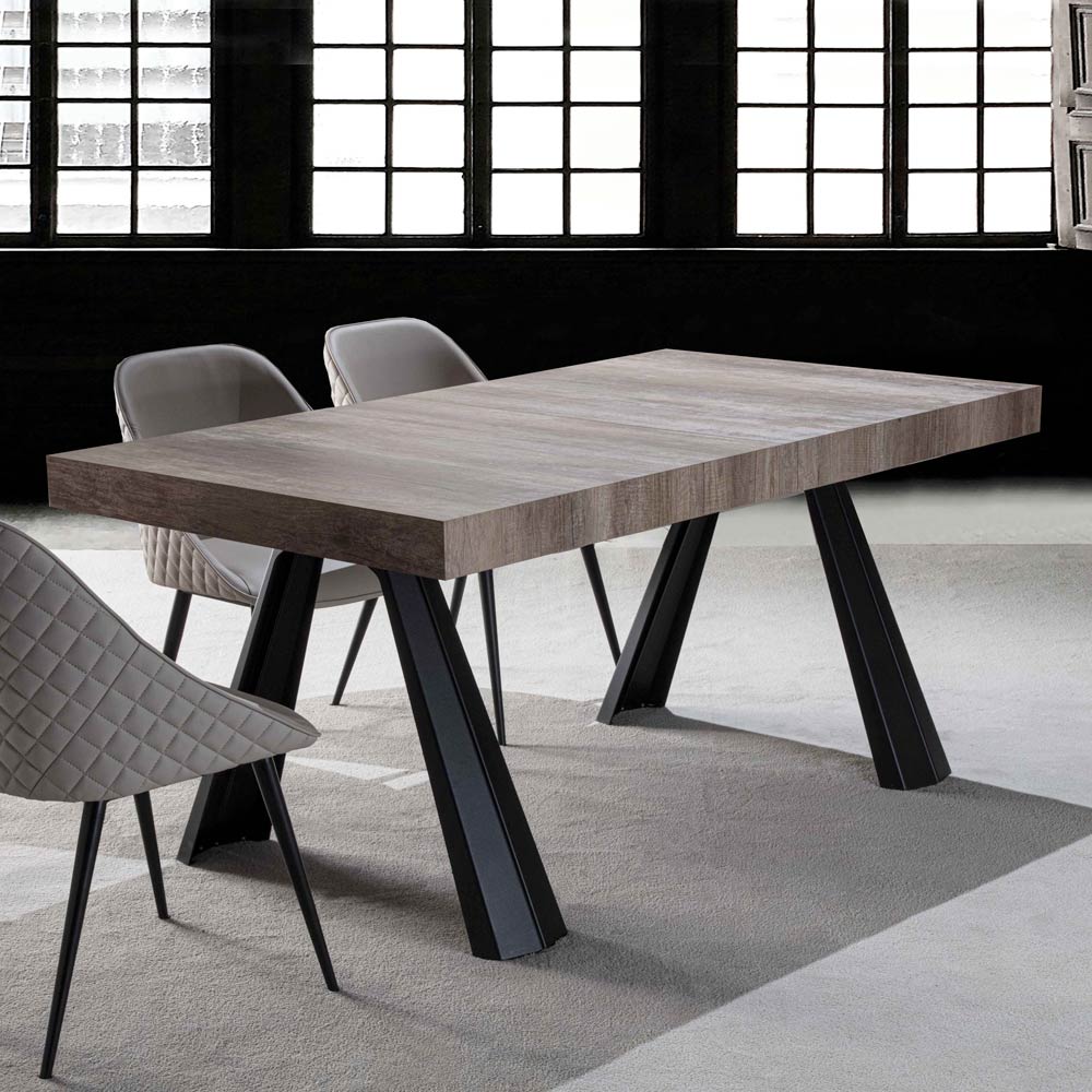 Mesa de comedor moderna con tapa de madera de melamina (h 8 cm) y base de metal pintado de negro . Su peculiaridad está representada por la posibilidad de extender la capota hasta una longitud máxima de 410 o 500 cm gracias a las extensiones del mismo color, lo que le permite alojar hasta 18 personas asegurando maravillosas comidas o cenas en compañía manteniendo unas dimensiones más reducidas una vez cerrado. . El estilo que caracteriza el diseño se basa en la sencillez y la funcionalidad , elementos fundamentales a la hora de buscar la mesa de comedor perfecta que pueda asegurar una excelente durabilidad y resistencia en el tiempo así como un look de impacto que pueda enriquecer la estética de la estancia. con personalidad y de forma innovadora.