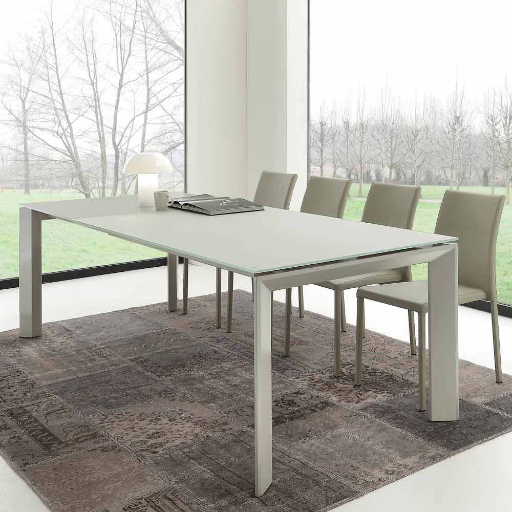 La mesa FALERIA es extensible con extensiones de libros y un diseño contemporáneo. Sus líneas son simples pero elegantes, este es un producto que se adaptará perfectamente a cualquier tipo de mobiliario. La estructura es de metal con evolución de patas laterales dobles huecas. La parte superior está realizada en vidrio templado (10 mm).