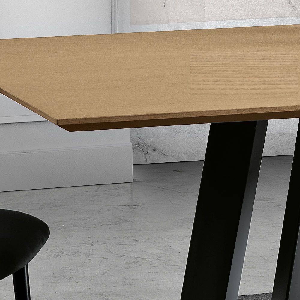 Esta mesa es una declaración de estilo para el hogar moderno. La tapa de MDF con acabado de fresno es una celebración de la calidez y la textura de la madera, invitando al tacto y agradable a la vista. El acabado de la madera está diseñado para realzar la veta natural, haciendo de cada mesa una creación única.