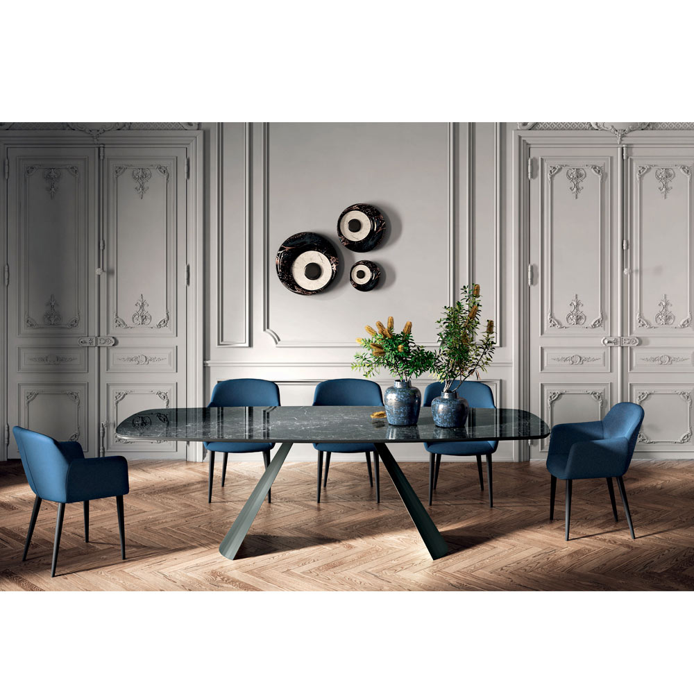 Mesa de salón fija en forma de barril, con tapa de cerámica acabado griego brillo , canto biselado a 45° , base de acero lacado titanio envejecido y pies regulables. La elección de materiales de primera calidad y la atención en la creación de cada detalle crean un producto de excelente calidad Made in Italy . Gracias a la forma de la base y a los acabados disponibles, esta mesa es protagonista de cualquier ambiente contract diario , convirtiéndose en una idea perfecta para todos aquellos que quieran darle a la estancia un toque elegante, suntuoso y único.