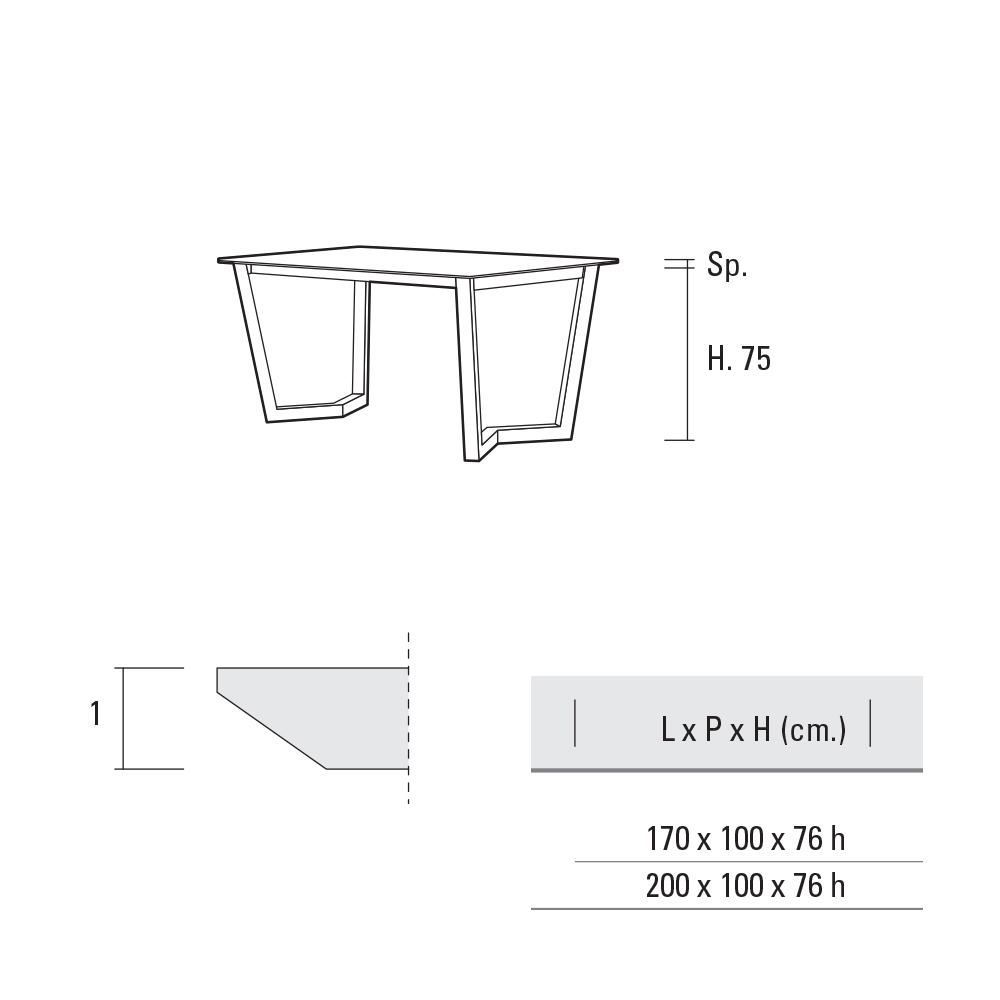 • Ancho 170 x Fondo 100 x Alto 76 cm;