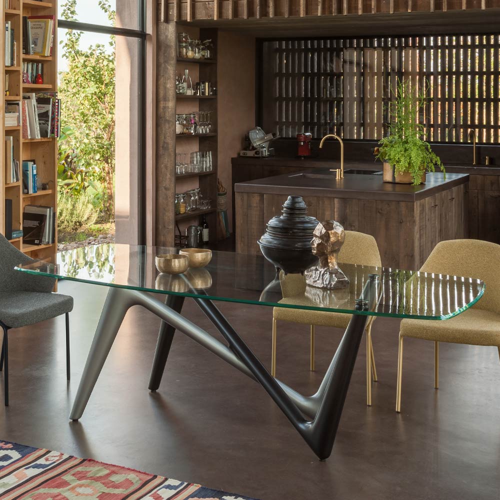 Mesa de comedor en poliuretano y vidrio Made in Italy