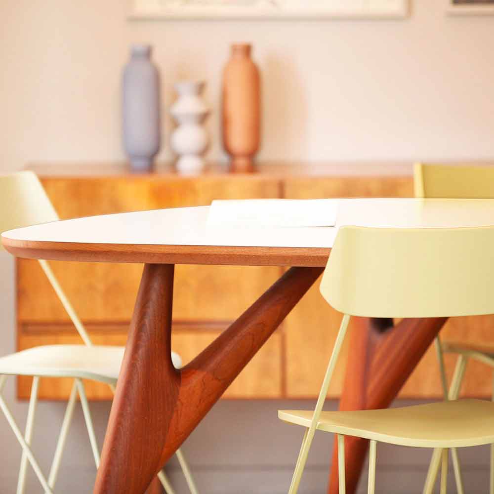 La elegancia atemporal de la madera maciza se combina con la modernidad del HPL para dar vida a una solución de decoración con un estilo inigualable capaz de adaptarse a cualquier ambiente, aportando un toque creativo y elegante y convirtiéndose en el verdadero protagonista del interior de la estancia. . De la elección de utilizar materias primas de alta calidad y alta calidad trabajadas por expertos artesanos , nace una idea de mobiliario revolucionaria, caracterizada por la delicada forma de vela de la tapa y la original horquilla de las piernas que enriquece el diseño. Estas peculiaridades permiten que la mesa transmita una sensación de ligereza y al mismo tiempo cree una armonía increíble con el mobiliario circundante, conquistando así todos los espacios.