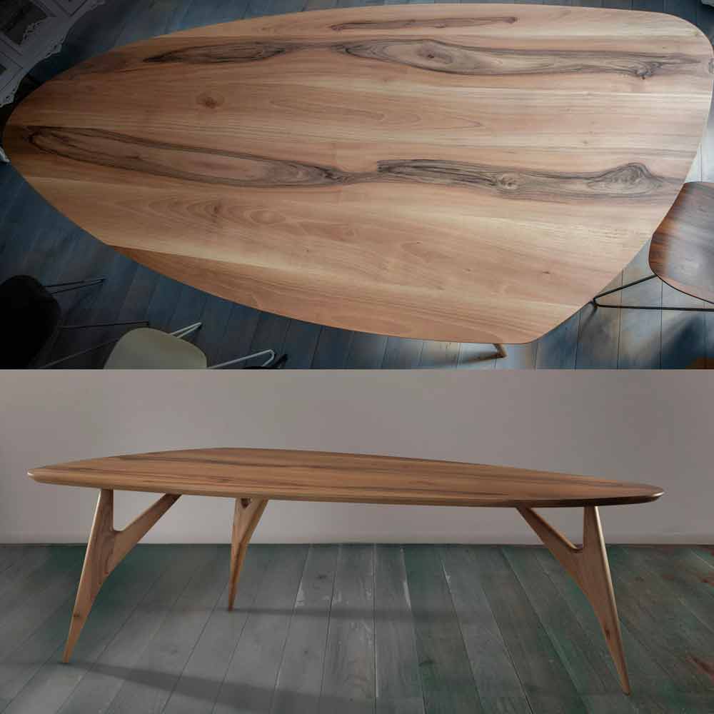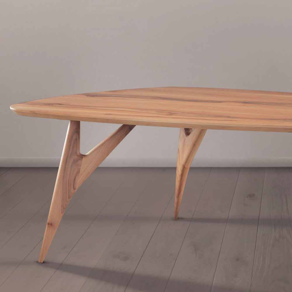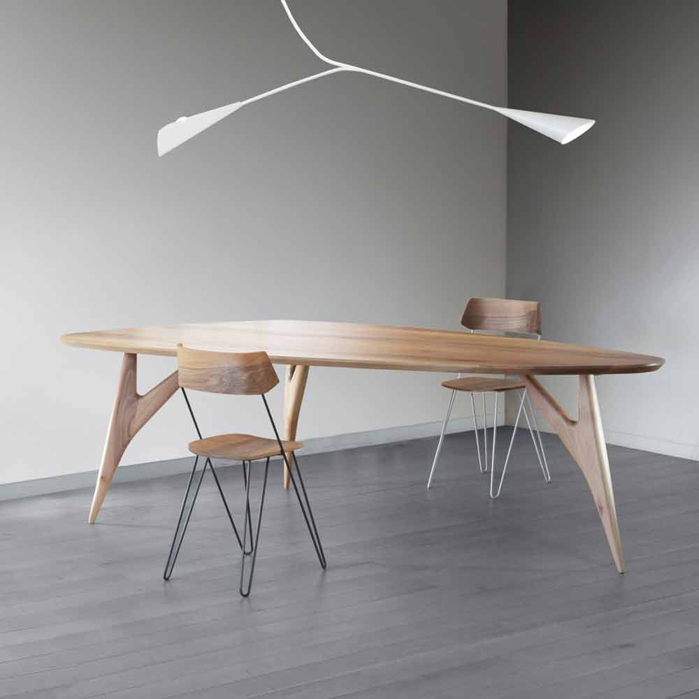 A través de la particular forma de sus tres patas y su original bifurcación, esta mesa transmite una sensación de ligereza y, junto con la suave forma de vela del tablero, crea una atmósfera capaz de conquistar cualquier espacio. Así nació una solución de decoración única, ideal para quienes buscan un estilo creativo que no pase desapercibido dentro de la habitación, logrando completar el mobiliario con su toque caprichoso y creando una perfecta armonía con los elementos que lo rodean.