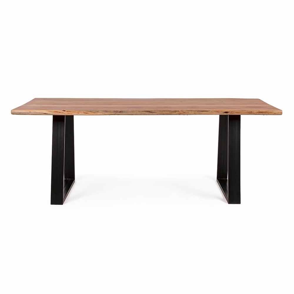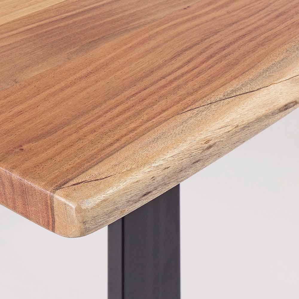 Tablero de madera de acacia , patas de acero con recubrimiento de polvo epoxi. Acabado a base de pintura de poliuretano.