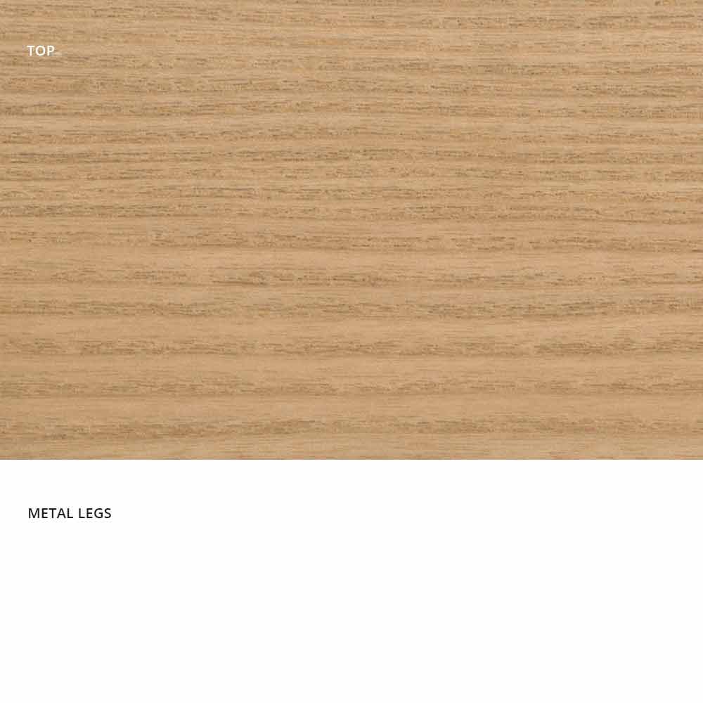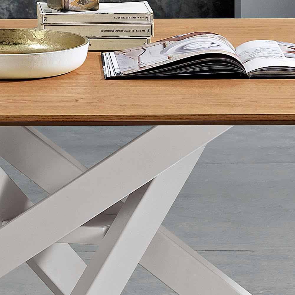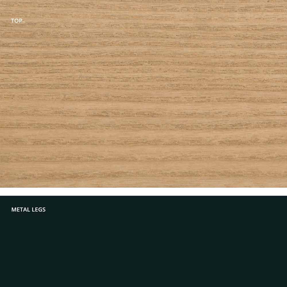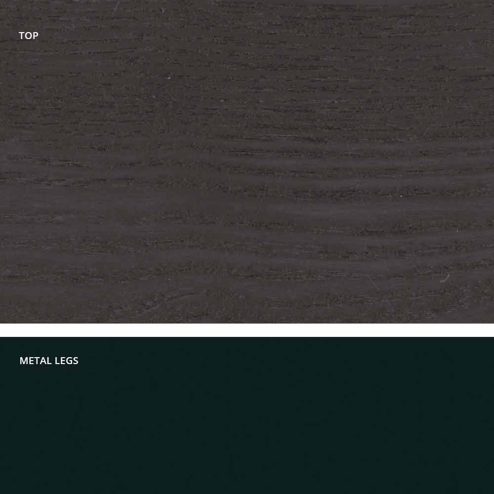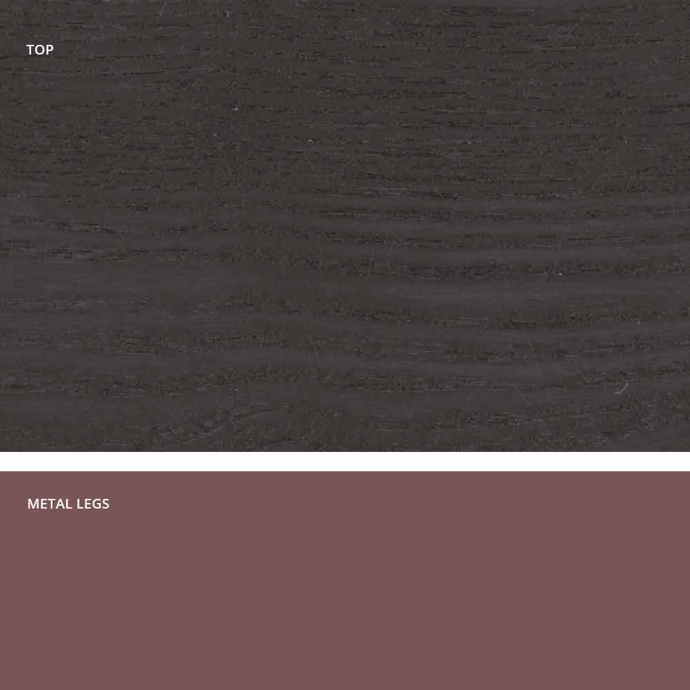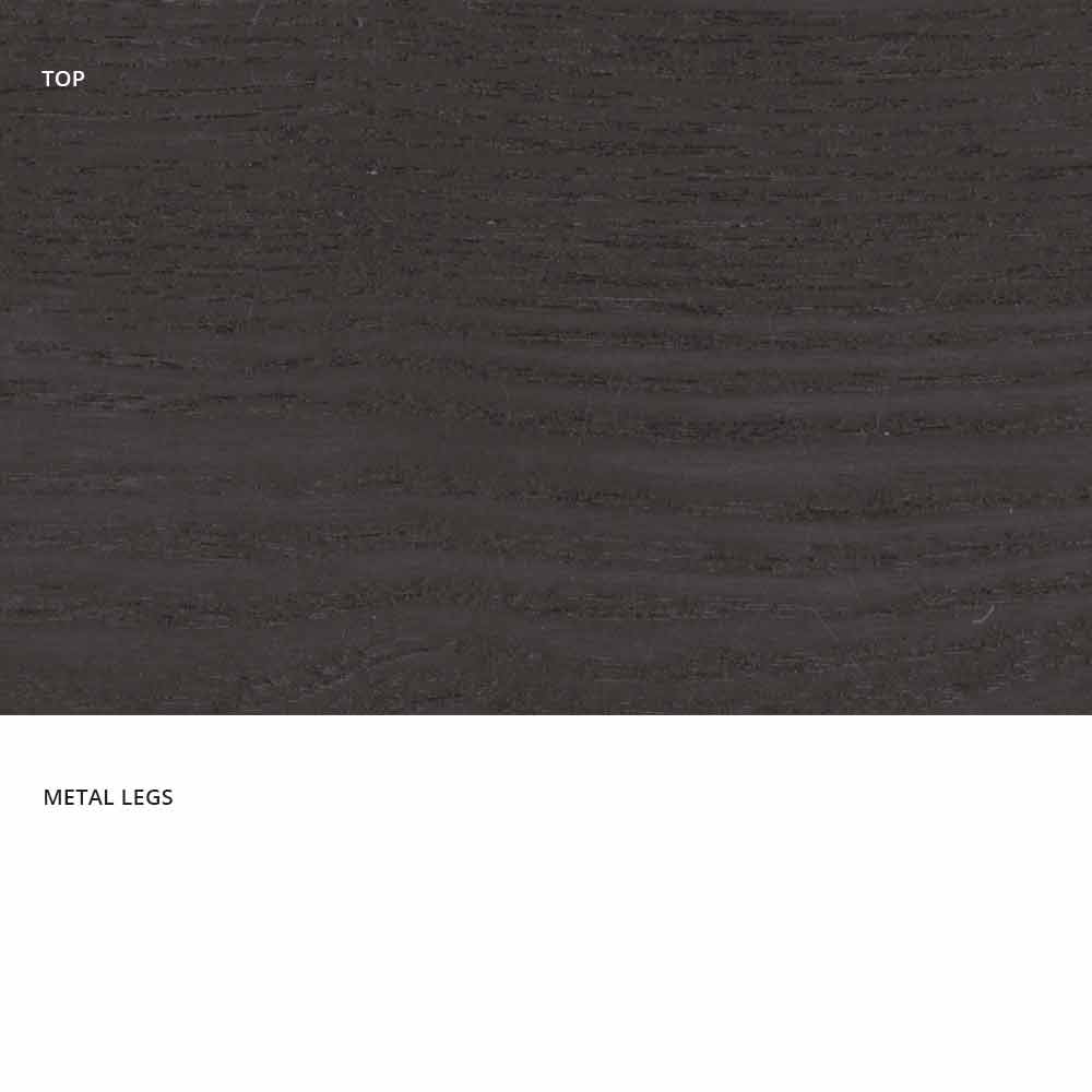 Dionigi es una mesa de comedor realizada en Italia con una base de metal pintado y una superficie enchapada de MDF (25 mm de grosor).