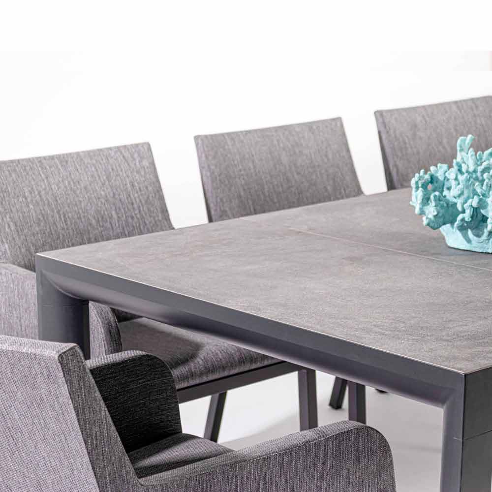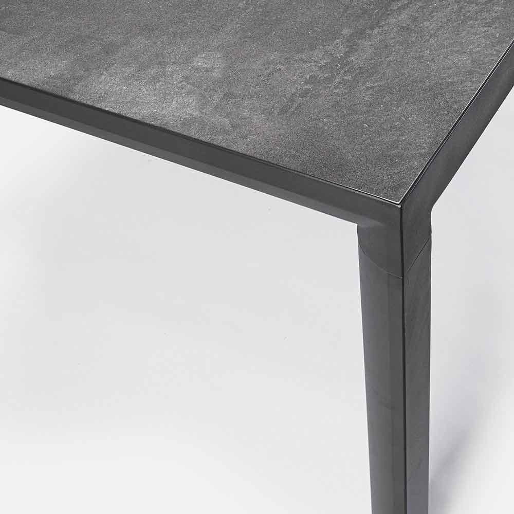 Estructura de aluminio , con recubrimiento de polvo (poliéster). Tapa de cerámica (10 mm de espesor). Piernas para montar . Acabados disponibles: