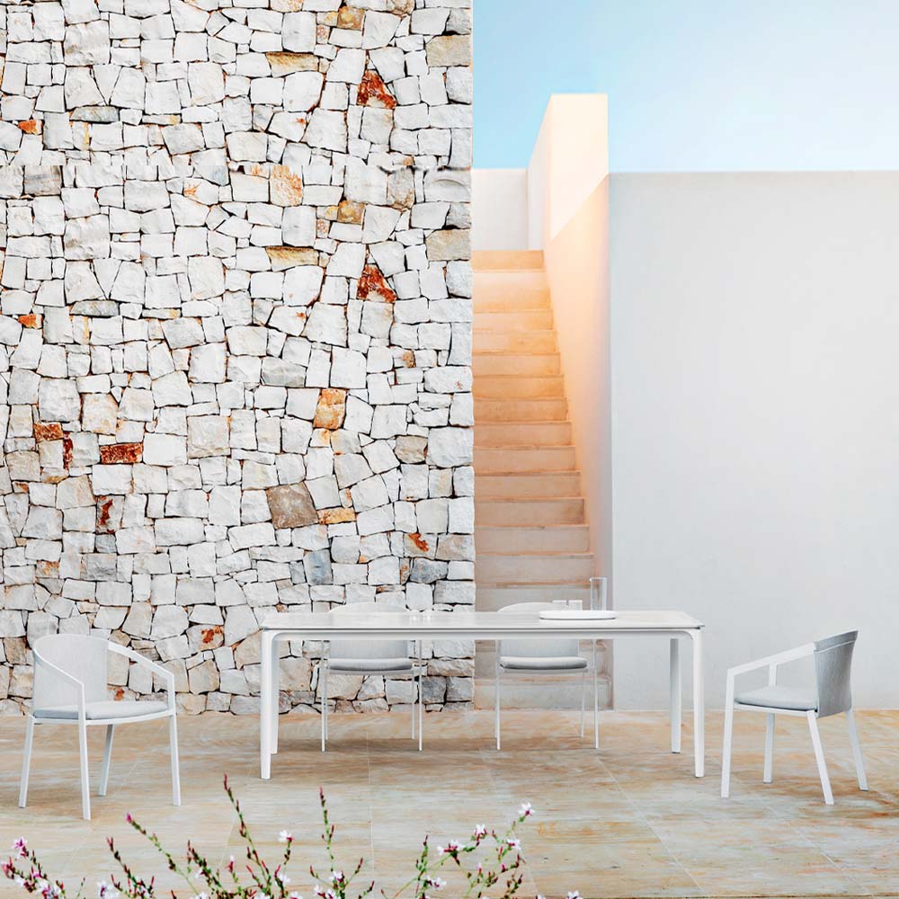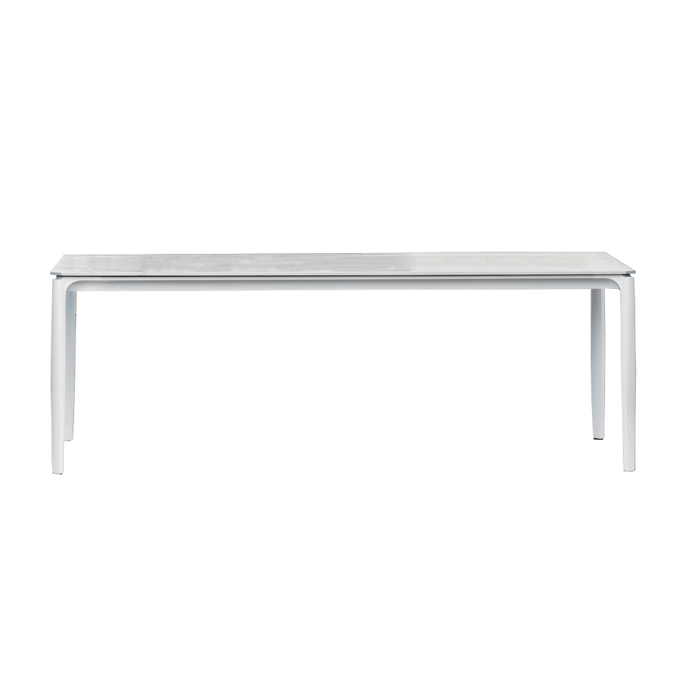 Mesa de comedor exterior en aluminio y gres o tapa de hpl en varios acabados, made in Italy.