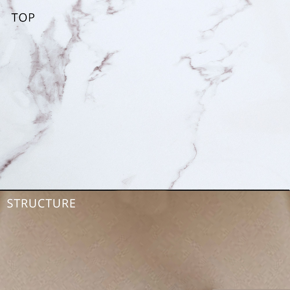 • estructura de aluminio blanco y encimera de gres efecto mármol blanco