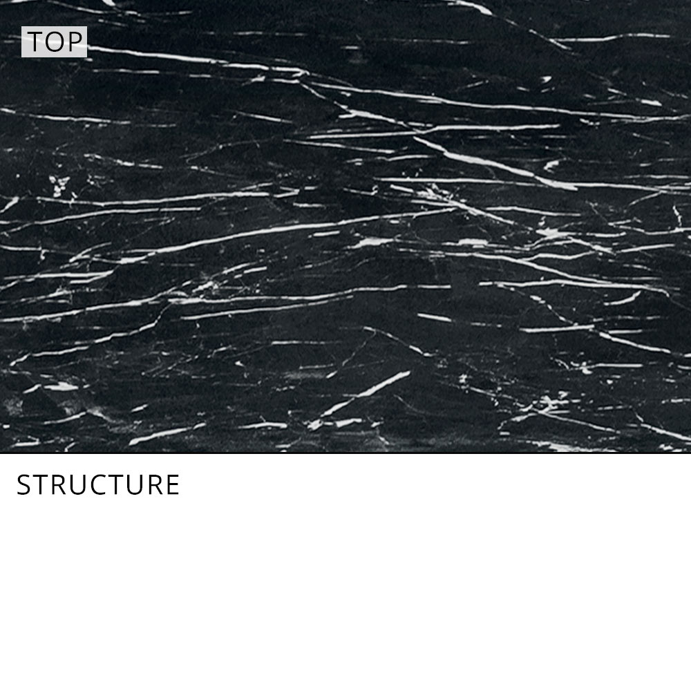 • estructura de aluminio gunmetal y encimera de gres efecto mármol negro