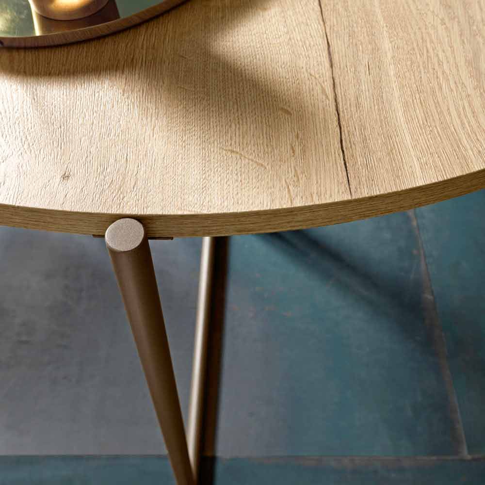 Hecho a mano en Italia con materiales de alta calidad y 100% made in Italy. Caracterizado por una tapa en madera de melaminay base de metal pintado en bronce repujado.