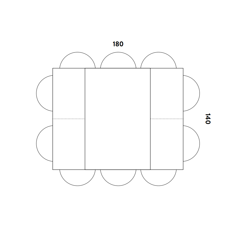 abierto: largo: 180 cm x fondo: 140 cm x alto: 76 cm