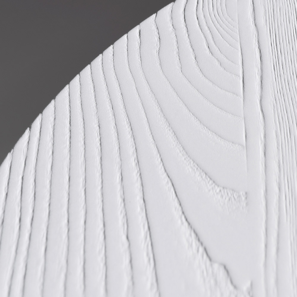 Fabricada con contrachapado de fresno termotratado , la mesa realza la veta natural de la madera, realzando su textura y profundidad cromática. También está disponible en laca blanca o negra , lo que la hace versátil y se adapta a diversos estilos, desde minimalistas hasta atrevidos y gráficos.