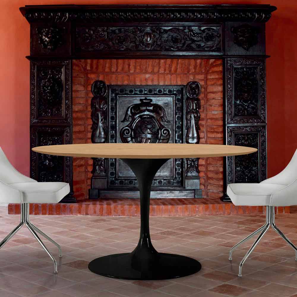 Mesa de comedor con tapa redonda en laminado HPL fabricada en Italia, de alta calidad.