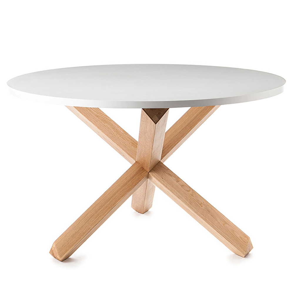 Mesa de comedor redonda en MDF blanco mate y madera maciza - Dante