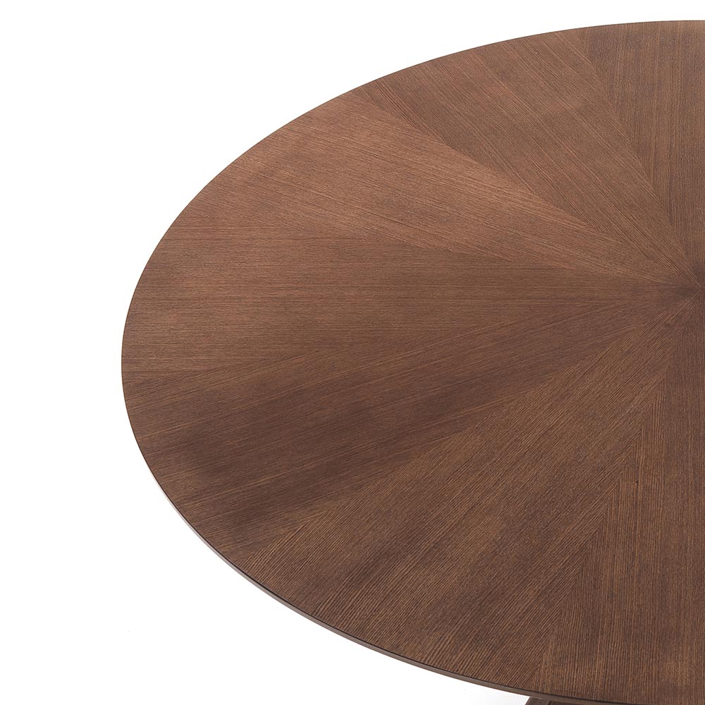 Mesa de comedor redondacon tapa de mdf chapado (espesor 18 mm) y base de madera maciza del mismo color. Un producto con un estilo impresionante y elegante diseñado para quienes aman decorar sus espacios domésticos con un toque refinado y de diseño . El punto fuerte de esta mesa está sin duda representado por la particular conformación de la base que, además de enriquecer la estética simple y minimalista , ayuda a dar estabilidad al producto para un resultado de calidad capaz de conquistar el centro de atención dentro de comedores o comedores. cocinas modernas.