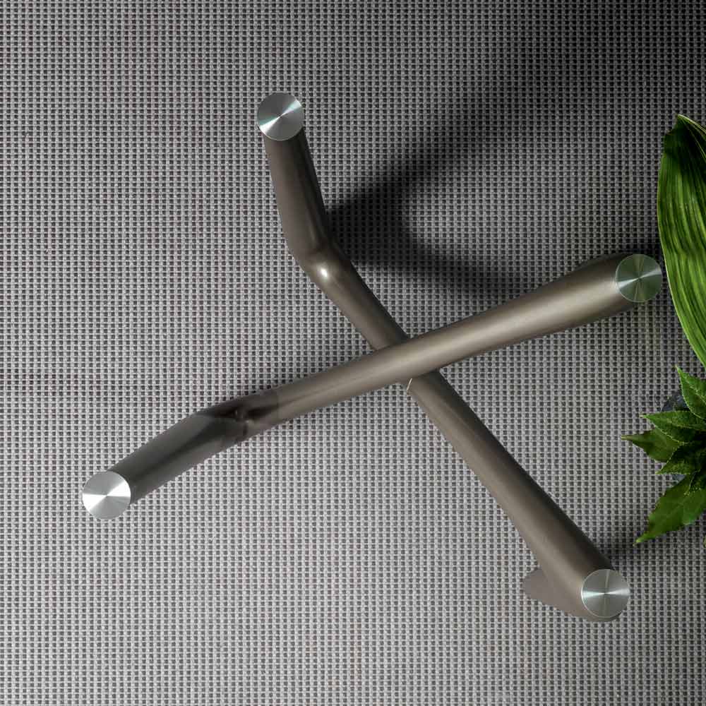Su peculiaridad viene dada por su imagen dinámica e innovadora tanto en términos de estética como de funcionalidad: la estructura se entrelaza para sostener ligeramente la encimera, dándole un aspecto escultural y refinado.