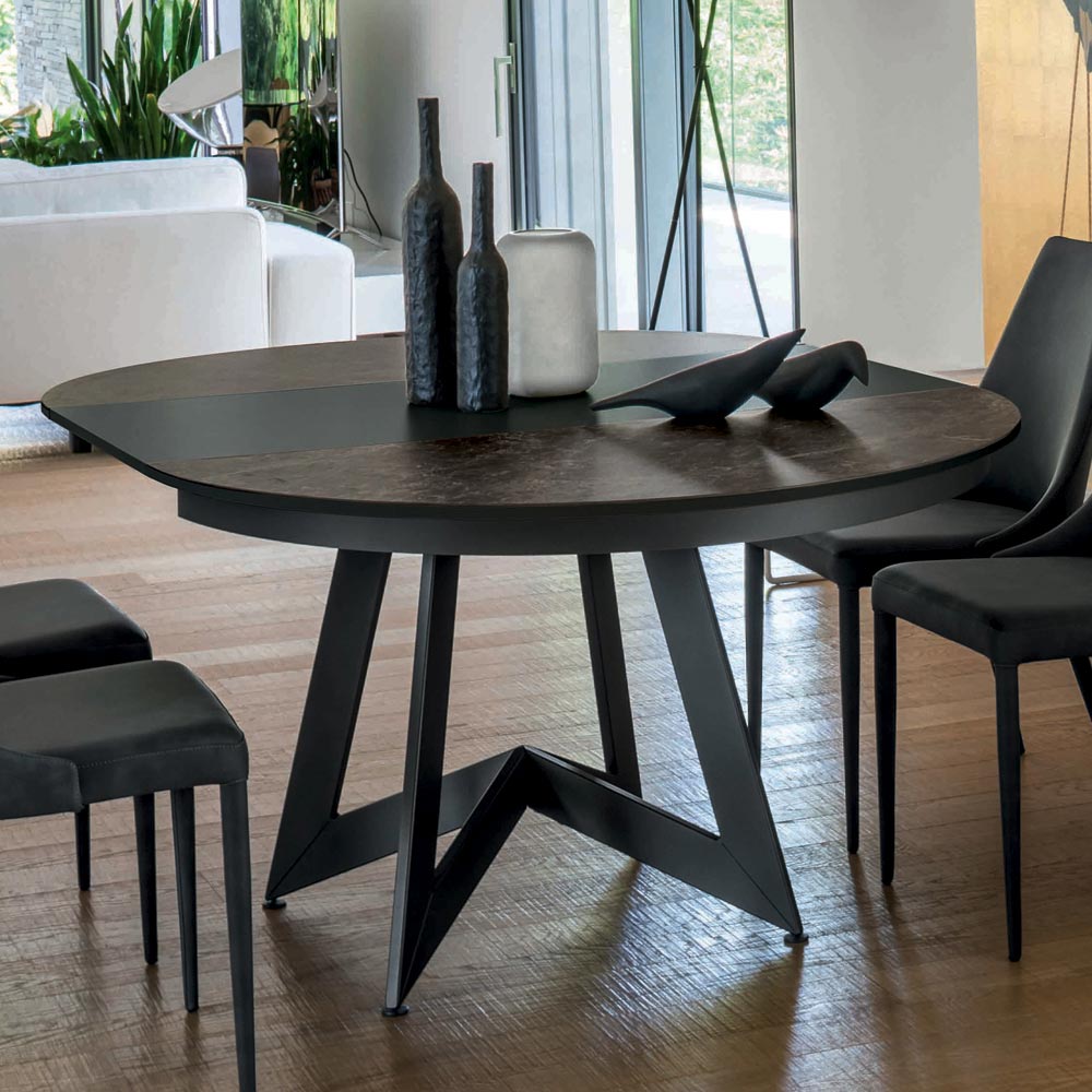 Mesa de comedor redonda extensible en cerámica y metal pintado Made in Italy.