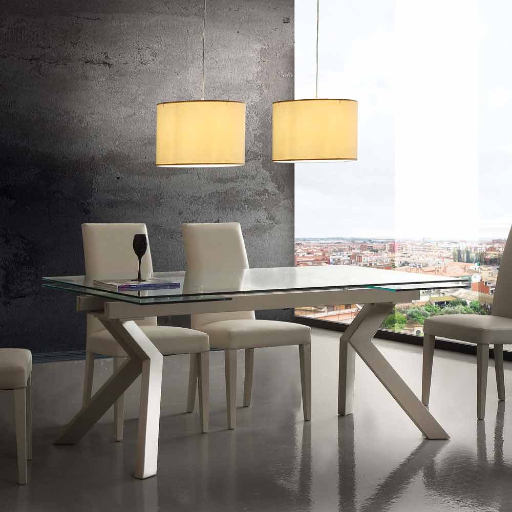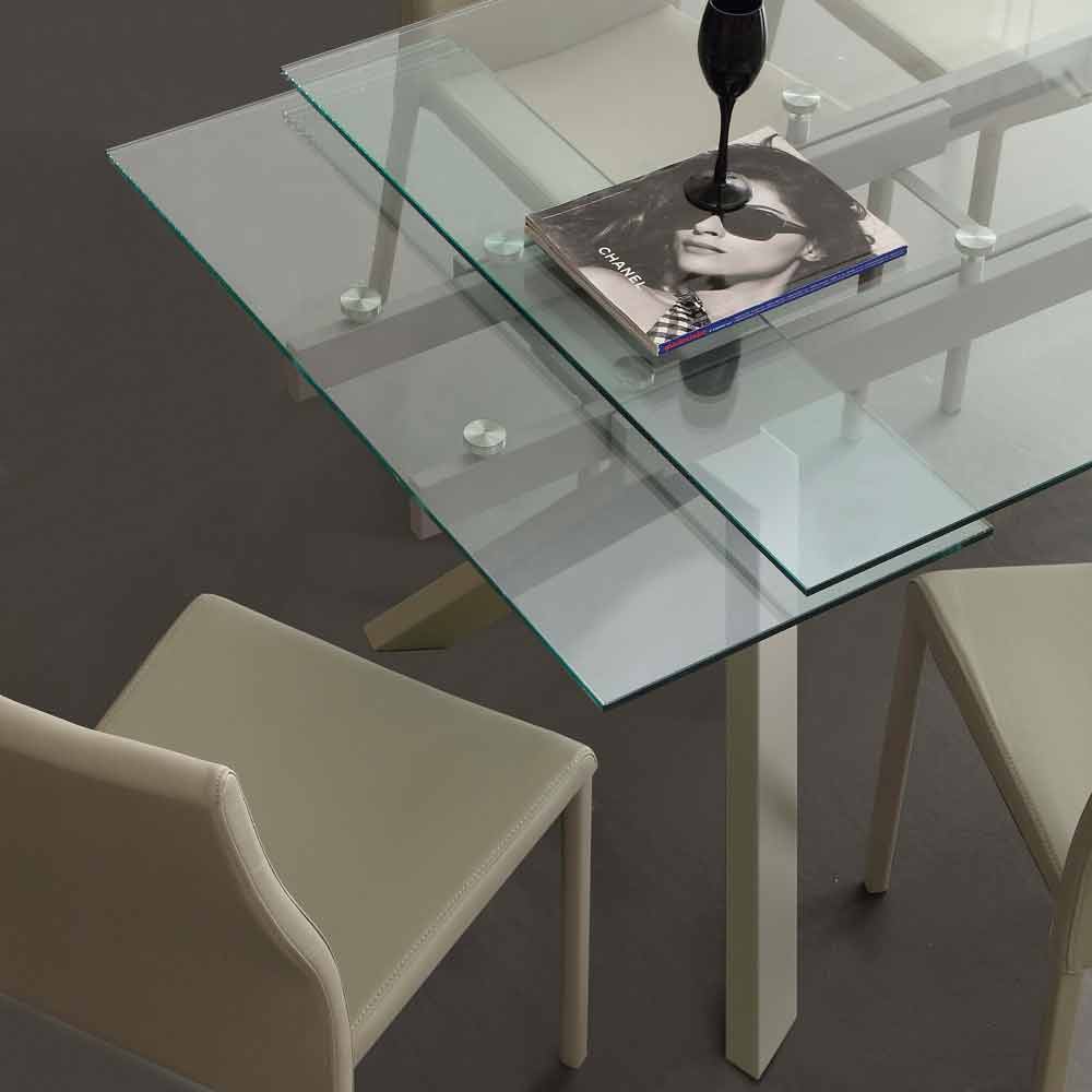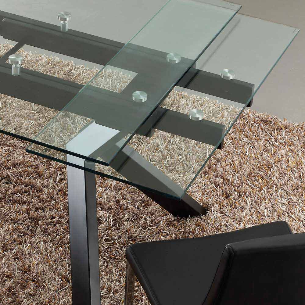 Mesa de diseño extensible de metal y cristal templado Mesa