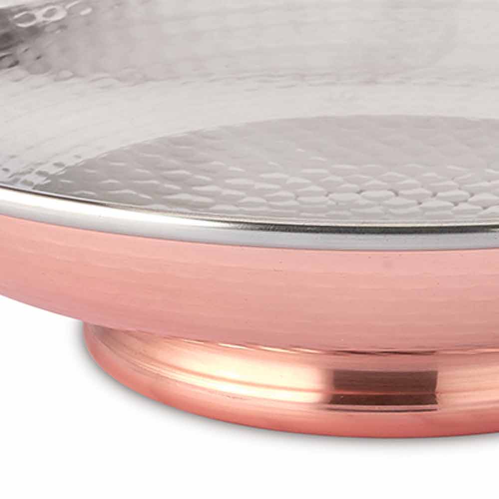Frutero de mar y tierra con diseño redondo en cobre pulido martillado hecho en Italia.