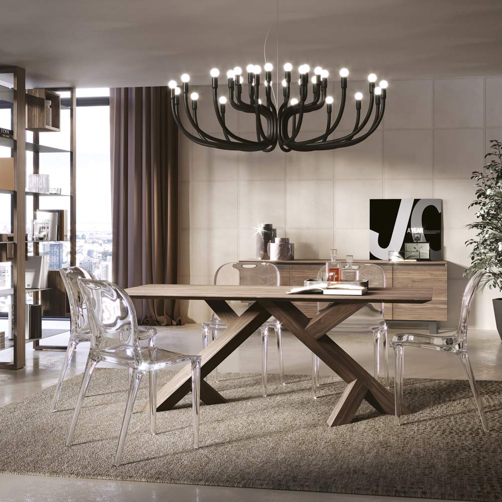 Mesa de estar en nogal macizo disponible en varios cantos Made in Italy.