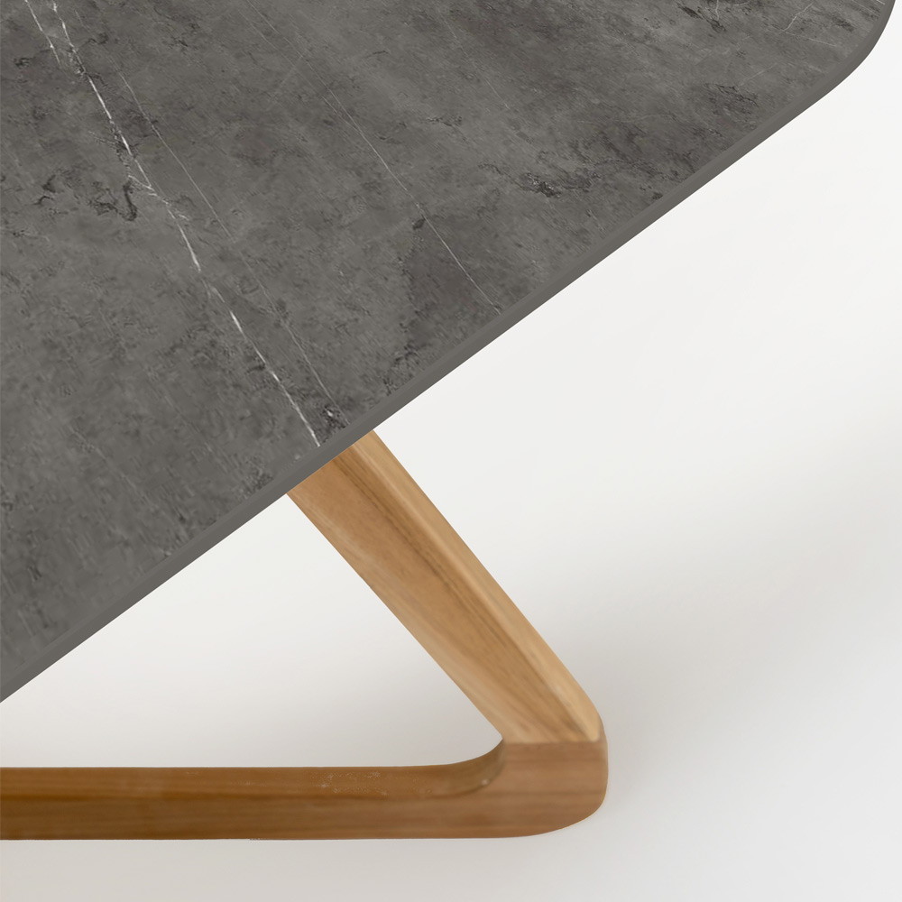 El tablero oscuro en Gris Pietra ofrece un contraste impactante con el cálido tono de la madera, convirtiendo esta mesa no solo en un complemento funcional para su espacio exterior, sino también en un elemento decorativo realmente atractivo. Perfecta para cualquier espacio exterior, desde un jardín moderno hasta una terraza clásica, la mesa se integra a la perfección con el resto, aportando un toque de estilo sofisticado .